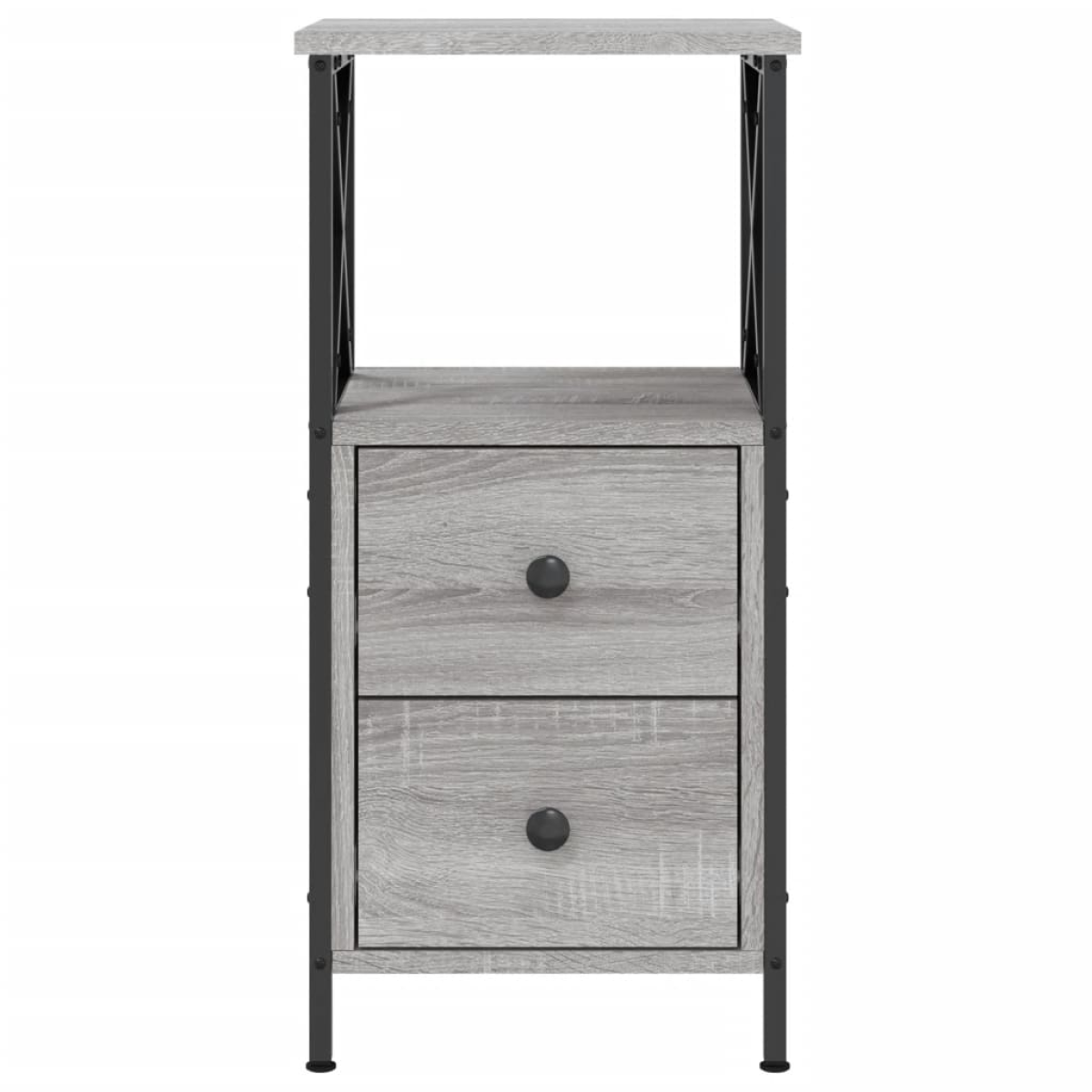 With a simple and compact design, this bedside cabinet fits easily into your bedroom or living room and adds a timeless charm to your interior. Durable material: The engineered wood is of exceptional quality with smooth surface and also features strength, stability and resistance to moisture. Sturdy frame: The iron frame ensures sturdiness and stability.Ample storage space: The bedside table offers ample storage space for keeping your various daily essentials well organised and within easy reach.Displaying function: You can also place your favourite photos, decorations, or flowers on top of the side table to enrich your life.Adjustable feet: Four adjustable feet with plastic pads keep the side cabinet balanced on uneven ground and increase stability. Warning:To prevent it being overturned, this product must be used with the provided wall attachment device.