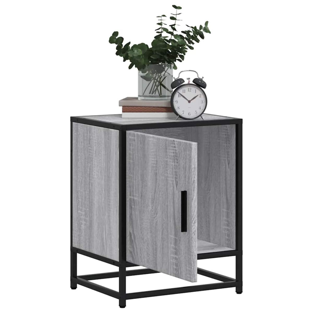 This bedside cabinet with an elegant design makes a timeless addition to your interior decor. Stable and durable material: Engineered wood is a durable and stable material with a smooth surface that is resistant to moisture, warping, and splitting, making it a reliable choice for a variety of projects.Stable and long-lasting frame: Metal material is strong, stable, and durable, making it an ideal choice for a wide range of applications, from furniture manufacturing to construction.Ample storage space: The bedside nightstand provides ample storage space for magazines, books, glasses, and other bedtime essentials, keeping them organised and within reach.Sturdy top: The sturdy top of the bedside stand is perfect for placing table lamps, alarm clocks, books, picture frames, small potted plants, decorations or other essentials.Practical door: The door of the bed cabinet provides enclosed storage space to keep your belongings organised, protected, and out of sight. Warning:To prevent it from tipping over, this product must be used with the provided wall attachment device.