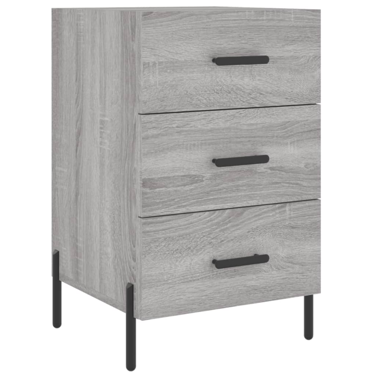 Introduce an air of modern charm to your interior with this bedside cabinet! Durable material: The engineered wood is of exceptional quality with smooth surface and also features strength, stability and resistance to moisture. Spacious storage: The bedside cabinet has drawers, providing spacious storage space to keep your books, multimedia appliances and other items within reach.Displaying function: You can also place your favourite photos, decorations or flowers on top of the side cabinet to enrich your life. Metal feet: The metal feet add a calm style to your interior while ensuring stability. Warning: To prevent it being overturned, this product must be used with the provided wall attachment device.