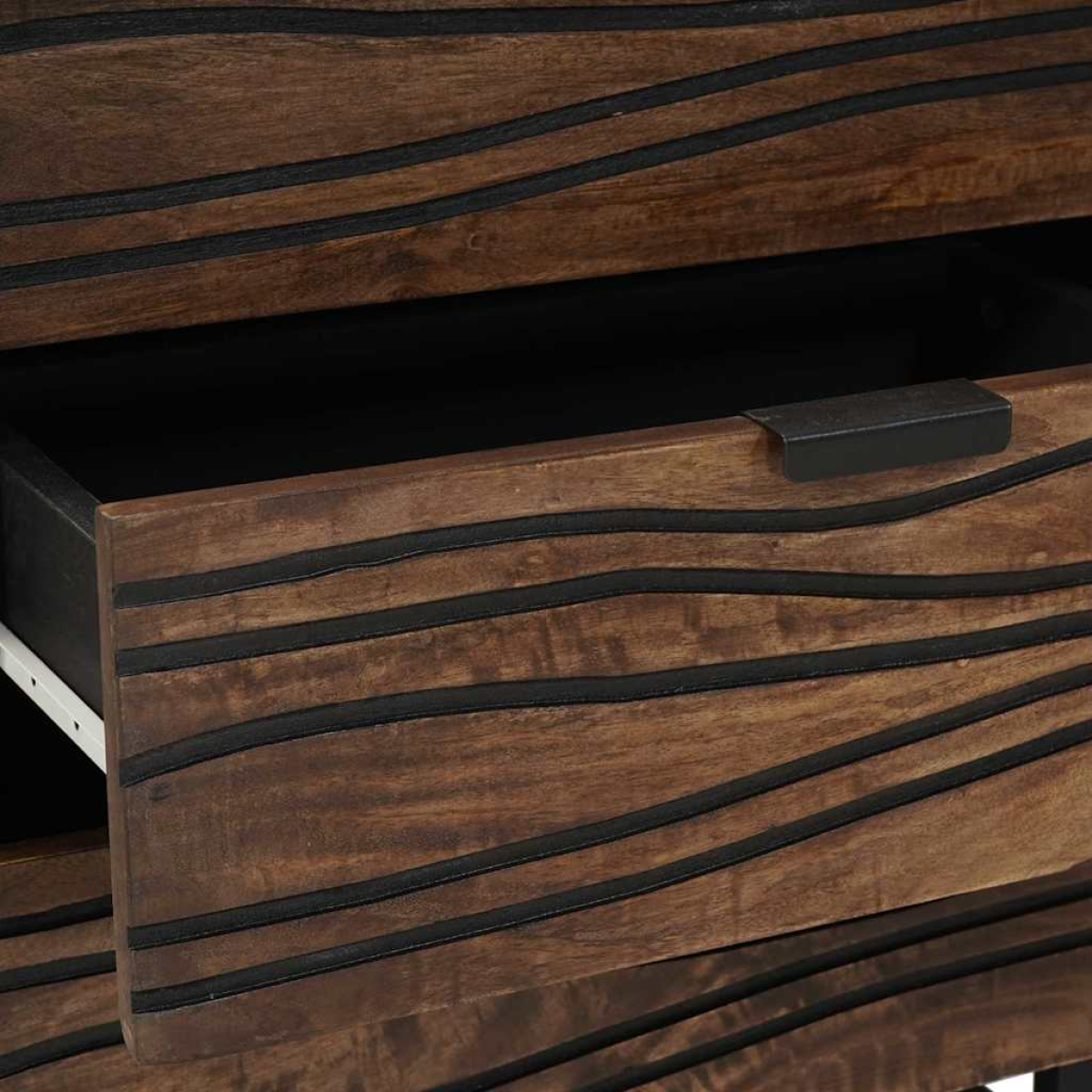 The Mango Wood Bedside Cabinet is a perfect blend of style and practicality for any bedroom. Its textured surface feels nice, making it a stylish addition while also being a handy storage solution for your personal bits and bobs. With its solid design and smart structure, it's all about easy access and keeping things tidy next to your bed, suiting all sorts of tastes and lifestyles. Materials: Made from solid mango wood, this bedside cabinet is really durable and stands up to daily use. Its tough finish helps it keep looking great and adds a natural elegance to your bedroom decor. Included Components: Features a classic drawer and handle setup, making it easy to open. There’s loads of space for your nighttime essentials, and a sturdy iron frame adds extra strength to the design. Every part is designed to work well and support you for the long haul. Features / Function / Design: With a sleek rectangular shape and wavy line pattern, this bedside cabinet is practical and looks great too. Its textured finish adds character, making it a standout piece. Built to last, it combines style and function for a good user experience. Recommended Uses: Perfect for the bedroom, it’s a handy spot for a lamp, alarm clock, or any essentials you need close by as you relax. It easily fits in with different bed styles, enhancing both your nighttime comfort and the overall look. Care & Maintenance: To keep it looking fab, don’t use harsh chemicals or scrubbing pads when cleaning. Dust it regularly and follow the assembly instructions carefully. Stick to these simple rules, and you’ll keep your furniture looking good for years.