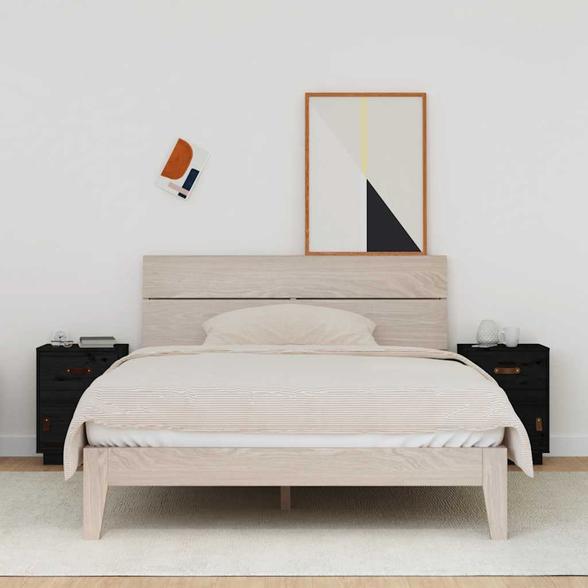 These wooden bedside cabinets with an elegant design make a timeless addition to your interior decor. Solid pine wood: Solid pine wood is a beautiful natural material. Pine wood has a straight grain, and the knots give the material its signature, rustic look.Ample storage space: Featuring 1 drawer and 1 compartment with door, having a faux leather handle on each, each cabinet offers ample storage space for keeping your magazines, books, DVDs, multimedia devices, and other decorative items well organised and within reach.Flexible door installation: The door of the bedside table can be installed on the left or right according to your personal habits and convenience.Sturdy top: The sturdy top of the side cabinet is ideal for displaying decorative objects, photo frames, or potted plants. Note:Each product comes with an assembly manual in the box for easy assembly. Warning:In order to prevent overturning, this product must be used with the wall attachment device provided.