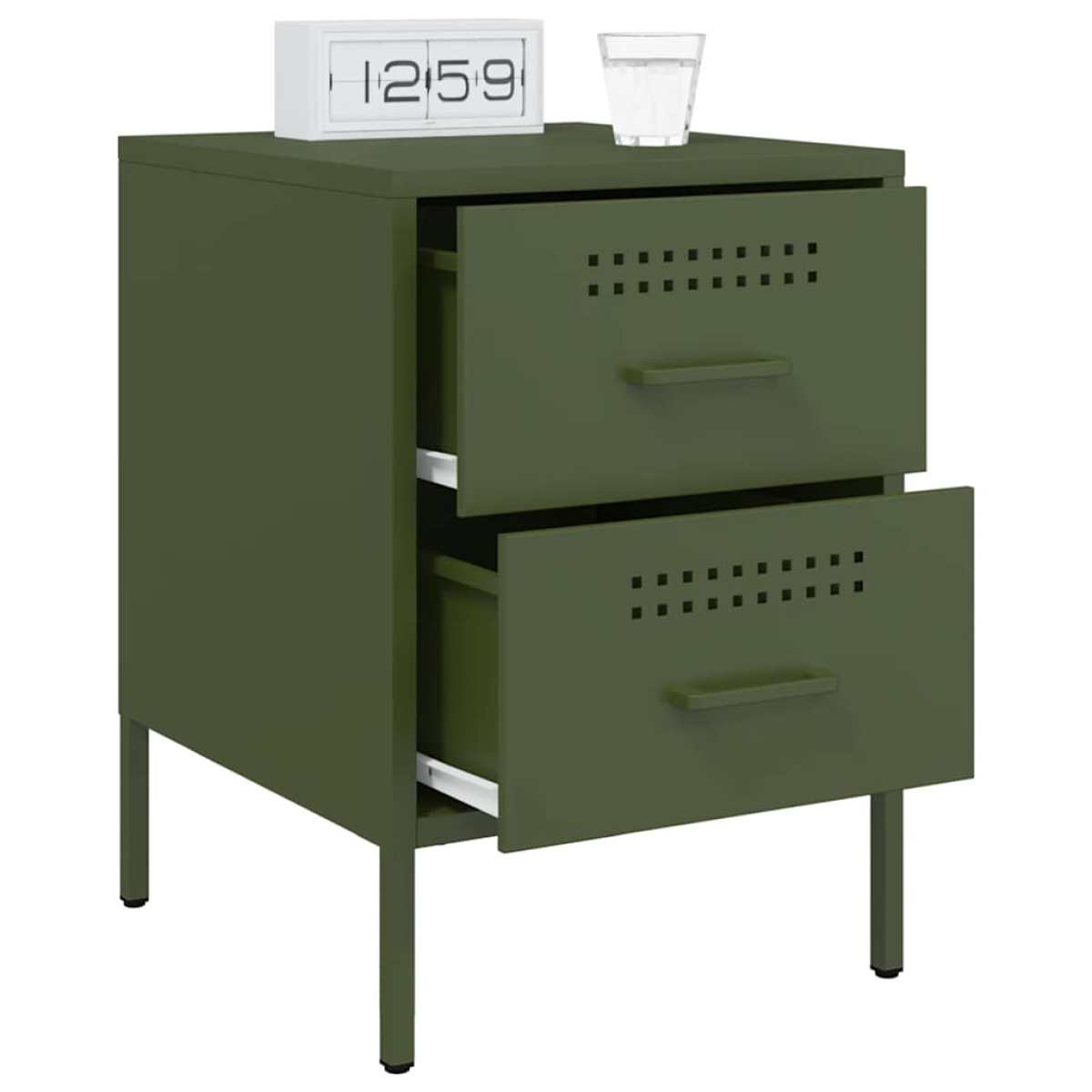 These bedside cabinets with an industrial style make a timeless addition to your interior decor. Robust and stable frame: Steel is strong, stable, and durable, making it an ideal choice for a wide range of applications, from furniture manufacturing to construction.Ample storage space: The bedside table with 2 drawers provides ample storage space for keeping your various daily essentials well-organised and within easy reach.Easy to clean: The steel nightstand is moisture-resistant and easy to clean with a damp cloth.Multifunctional design: This cabinet is ideal to serve as a nightstand next to your bed, a side table next to the couch in the living room, or as an additional cabinet in the study.Displaying function: You can also place your favourite photos, decorations or flowers on top of the bedside table to enrich your life. Warning:To prevent it from tipping over, this product must be used with the provided wall attachment device.