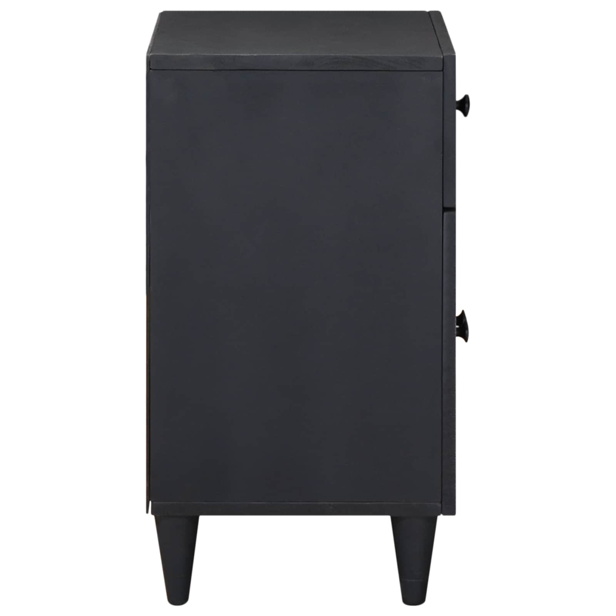 This modern bedside table enhances your bedroom with its sleek design and functional use. It combines simplicity and sophistication through a rectangular shape made from solid mango wood, complemented by engineered wood details. The piece serves as an ideal place for a reading lamp, alarm clock, and personal items, fitting seamlessly into contemporary interiors. Solid Mango Wood: The main structure is crafted from solid mango wood, offering a sturdy and durable build. Its natural grains foster a warm, organic look that complements the brass detailing, ensuring the bedside table stands out as a unique piece in your room. Brass Knobs: Featuring brass knobs, the bedside table boasts a refined touch that adds elegance. These knobs not only enhance the table's aesthetic appeal but also provide swift and easy access to the storage compartments, increasing its functionality. Compact Design: Measuring at 50 x 33 x 60 cm, the table fits perfectly next to any standard bed. Its petite size offers versatility, making it an excellent choice for smaller bedrooms or urban living spaces where every inch matters. Modern Style: This table embodies modern design, characterized by clean lines and minimal ornamentation. Its aesthetic simplicity ensures it integrates effortlessly into an array of bedroom styles, accentuating both contemporary and classic décors. Easy Care: Maintenance involves a simple wipe with a dry cloth, keeping the table spotless with minimal effort. Such upkeep helps preserve its vibrant multicolor finish for years, allowing it to remain as striking as the day it was introduced to your home.