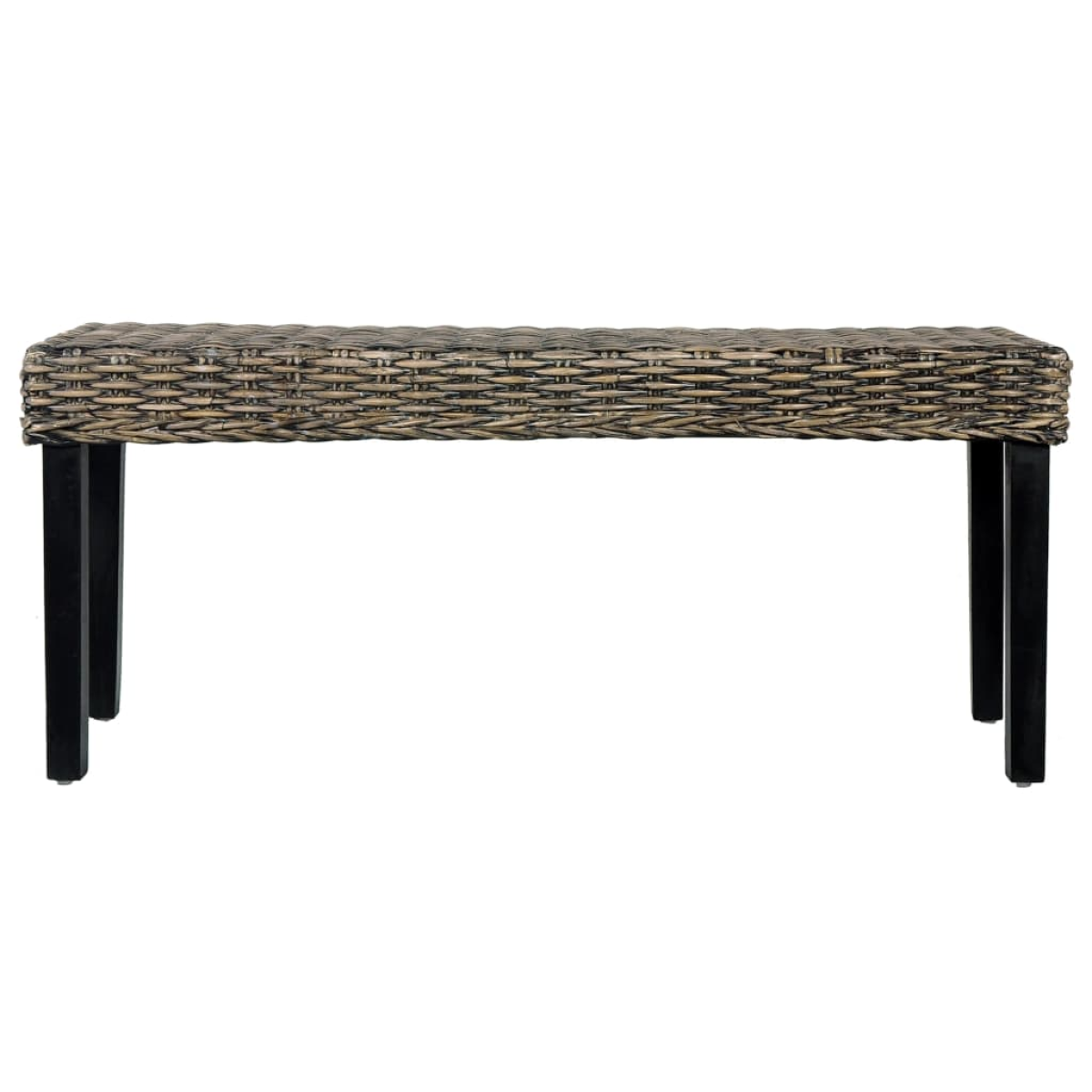 vidaXL Bench 110 cm Black Natural Kubu Rattan and Solid Mahogany Wood