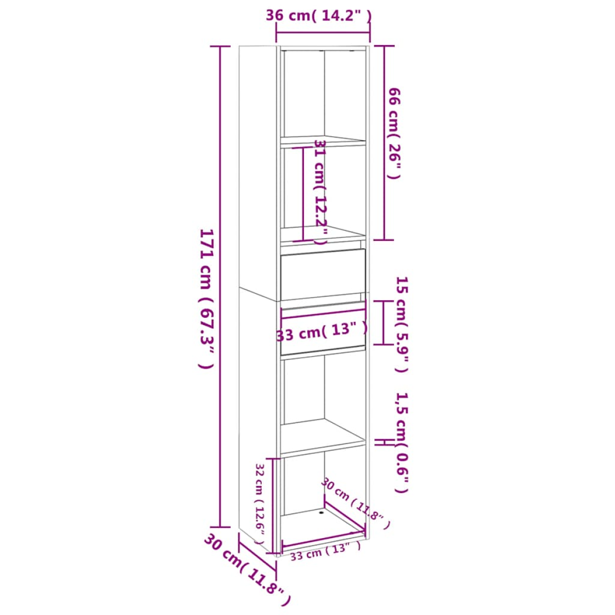 - Dimensions: 36 x 30 x 171 cm (W x D x H)