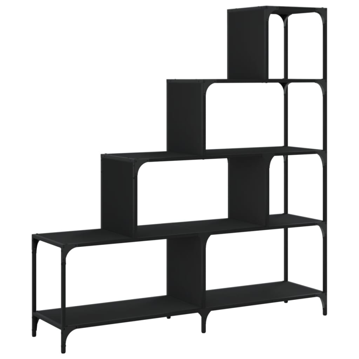 This bookcase with 4 stairs is a great helper to organising clutter as well as a timeless addition to your home decor. Sturdy construction: The powder-coated steel and engineered wood ensure sturdy construction and provide your items with strong support.Space-saving design: The bookshelf makes optimal use of vertical space and takes up little floor space, which is especially suitable for small rooms.Ample storage space: The book rack features 4 stairs, providing ample storage space for you to store and display your books, magazines, decorative items, picture frames, holiday souvenirs and trophies while enhancing your living space.Wide applications: The display shelf can also be used as a room divider, easily fitting into any style of room. You can place it in the living room to display decoration, in the study to store books and documents, in the bedroom to store everyday items, and in the basement to store bits and bobs. Warning:To prevent it being overturned, this product must be used with the provided wall attachment device.