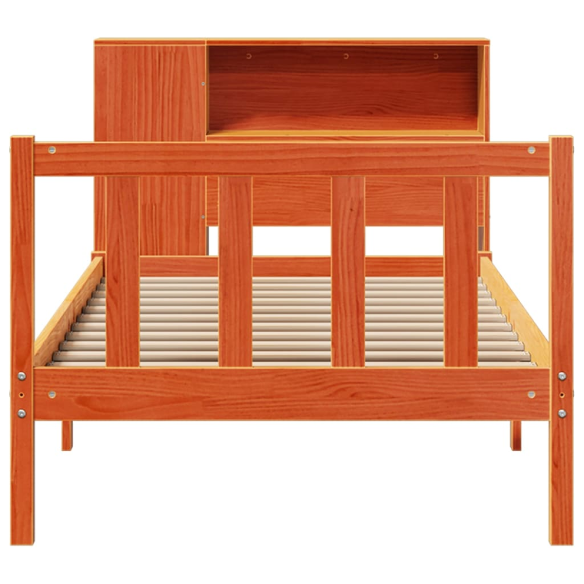 Get a better restful night's sleep from this bookcase bed! It makes a welcoming addition to any bedroom. Stable and long-lasting frame: Solid pinewood is known for its strength and durability. Its straight grains and distinctive knots contribute to its rustic charm.Slatted base for optimal support: The bed frame is equipped with a slatted base for support and breathability for your mattress.Ample storage space: This bookcase headboard offers ample storage space to keep books, decorative items, or personal belongings within easy reach, reducing clutter in the bedroom.Practical footboard: The footboard not only contributes to the overall stability of the bed frame, providing a safe sleeping environment, it also secures your mattress in place and prevents blankets, sheets and other bedding from falling off the end of the bed, maintaining a neat appearance.Space saving: This headboard is a space-saving option that can replace the need for a bedside table, helping maximise your bedroom space, and making it ideal for small or limited spaces. Good to know:A mattress is not included with this bed. We do offer a various selection of mattresses. You can check our shop for a matching mattress.