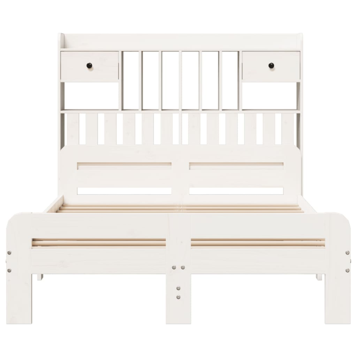 Get a better restful night's sleep from this bookcase bed! It makes a welcoming addition to any bedroom. Stable and long-lasting frame: Solid pinewood is known for its strength and durability. Its straight grains and distinctive knots contribute to its rustic charm.Slatted base for optimal support: The bed frame is equipped with a slatted base for support and breathability for your mattress.Ample storage space: This bookcase headboard offers ample storage space to keep books, decorative items, or personal belongings within easy reach, reducing clutter in the bedroom.Practical footboard: The footboard not only contributes to the overall stability of the bed frame, providing a safe sleeping environment, it also secures your mattress in place and prevents blankets, sheets and other bedding from falling off the end of the bed, maintaining a neat appearance.Space saving: This headboard is a space-saving option that can replace the need for a bedside table, helping maximise your bedroom space, and making it ideal for small or limited spaces. Good to know:A mattress is not included with this bed. We do offer a various selection of mattresses. You can check our shop for a matching mattress.