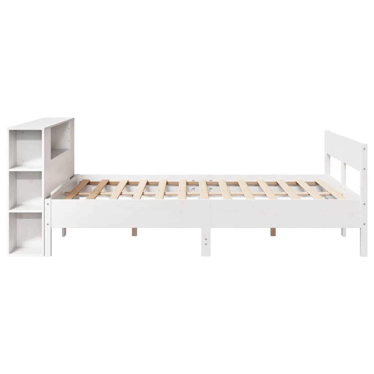 Get a better restful night's sleep from this bookcase bed! It makes a welcoming addition to any bedroom. Stable and long-lasting frame: Solid pinewood is known for its strength and durability. Its straight grains and distinctive knots contribute to its rustic charm. Slatted base for optimal support: The bed frame is equipped with a slatted base for support and breathability for your mattress. Ample storage space: This bookcase headboard offers ample storage space to keep books, decorative items, or personal belongings within easy reach, reducing clutter in the bedroom. Practical footboard: The footboard not only contributes to the overall stability of the bed frame, providing a safe sleeping environment, it also secures your mattress in place and prevents blankets, sheets and other bedding from falling off the end of the bed, maintaining a neat appearance. Space saving: This headboard is a space-saving option that can replace the need for a bedside table, helping maximise your bedroom space, and making it ideal for small or limited spaces. Good to know:A mattress is not included with this bed. We do offer a various selection of mattresses. You can check our shop for a matching mattress.