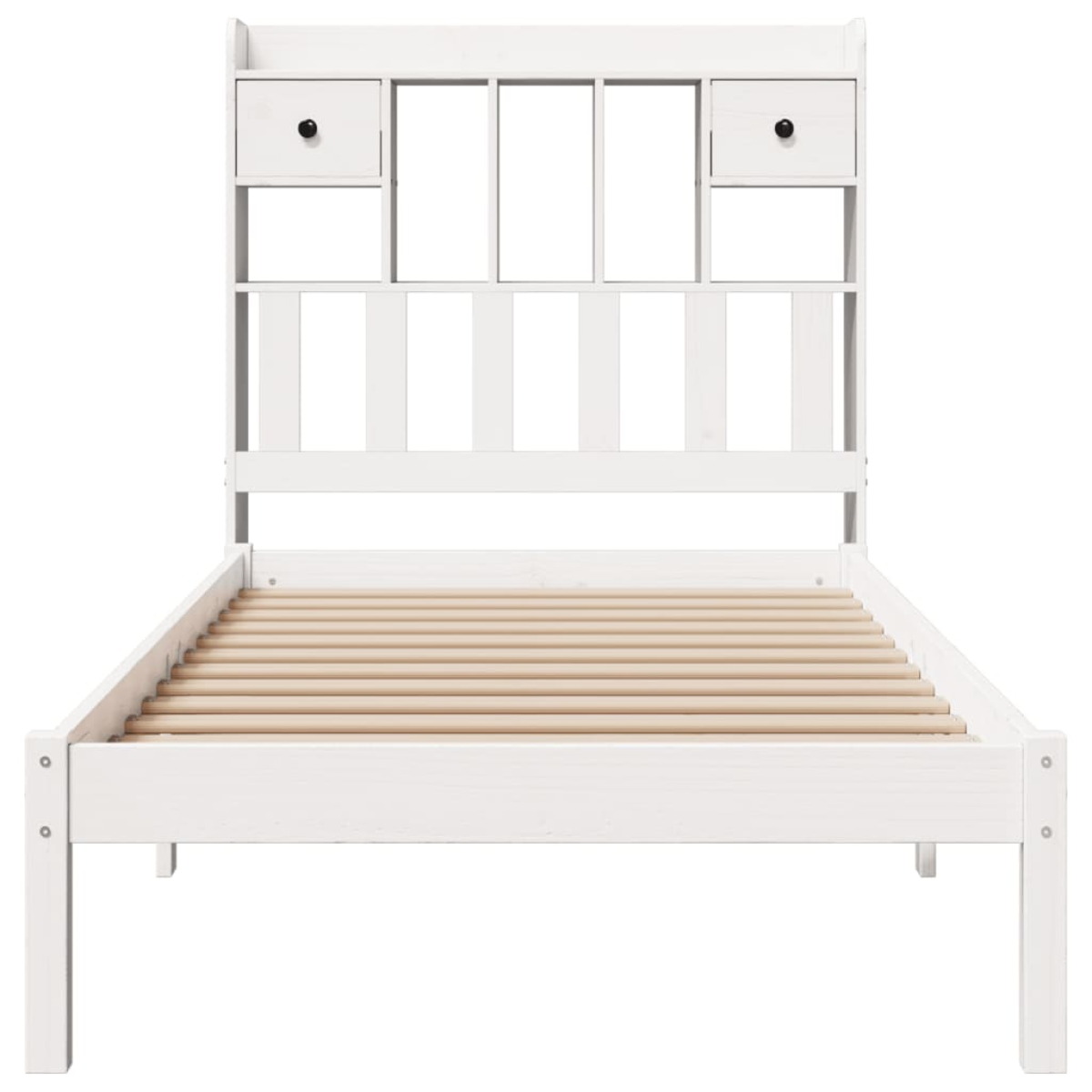 Get a better restful night's sleep from this bookcase bed! It makes a welcoming addition to any bedroom. Stable and long-lasting frame: Solid pinewood is known for its strength and durability. Its straight grains and distinctive knots contribute to its rustic charm.Slatted base for optimal support: The bed frame is equipped with a slatted base for support and breathability for your mattress.Ample storage space: This bookcase headboard offers ample storage space to keep books, decorative items, or personal belongings within easy reach, reducing clutter in the bedroom.Space saving: This headboard is a space-saving option that can replace the need for a bedside table, helping maximise your bedroom space, and making it ideal for small or limited spaces. Good to know:A mattress is not included with this bed. We do offer a various selection of mattresses. You can check our shop for a matching mattress.