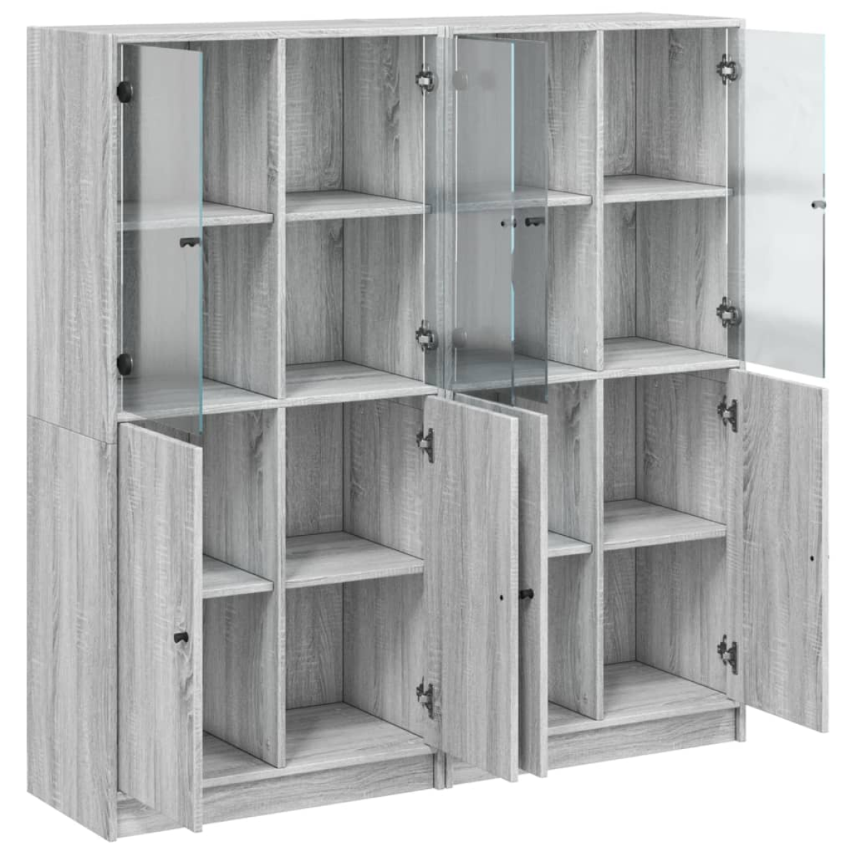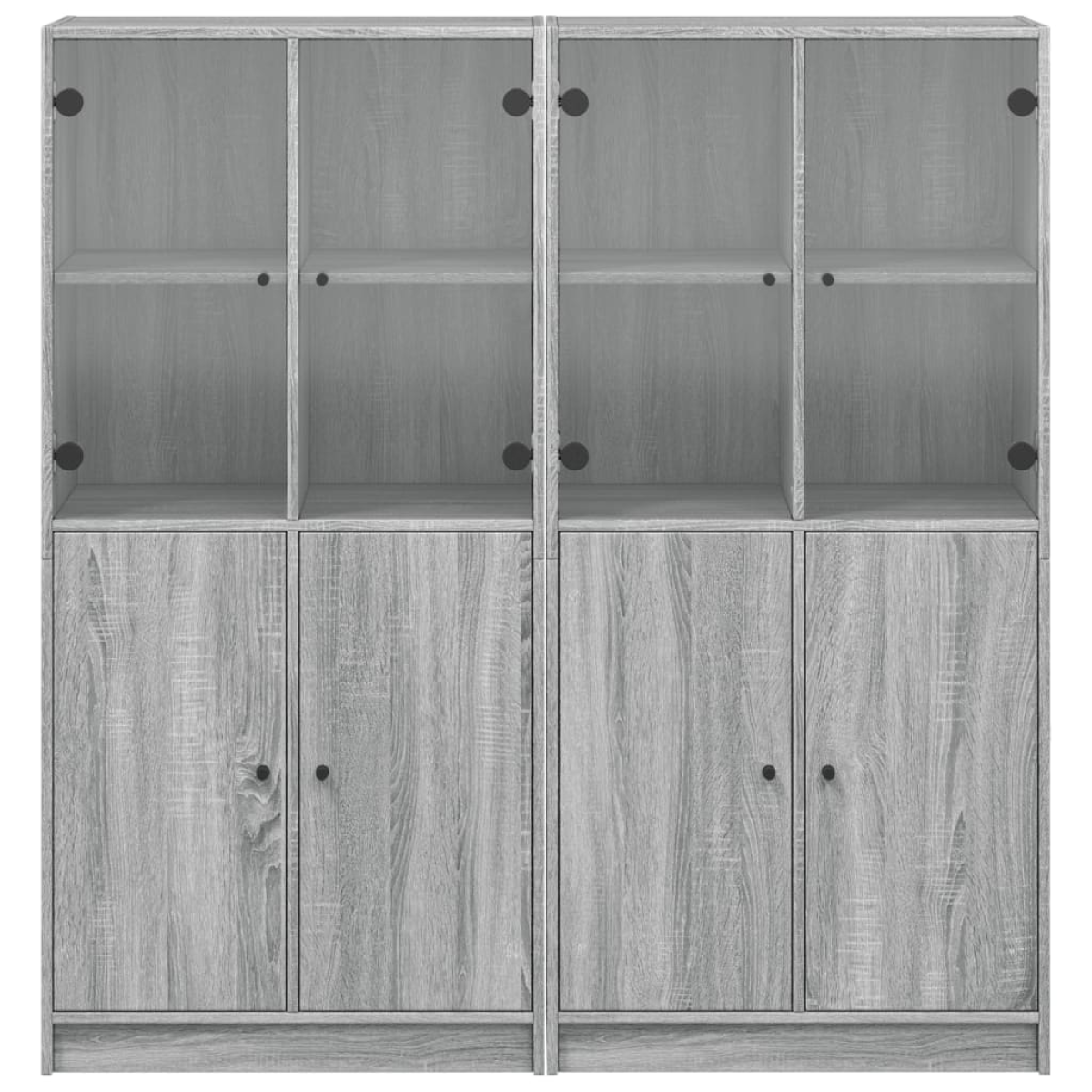 This bookcase provides an ideal solution for organising your books and will add a touch of modern charm to your interior. Durable and sturdy material: The engineered wood is of exceptional quality with smooth surface and also features strength, stability and resistance to moisture.Ample storage space: The bookshelf offers ample storage space for keeping your collection of books, magazines, and documents in good order.Stable and sturdy top: The top of the storage cabinet is perfect for displaying your decorative items, picture frames, and potted plants.Practical design: Keep your essentials free from dust by hiding them behind the doors. In addition, the handles make it easy to open the book shelf. Warning:To prevent it from tipping over, this product must be used with the provided wall attachment device.
