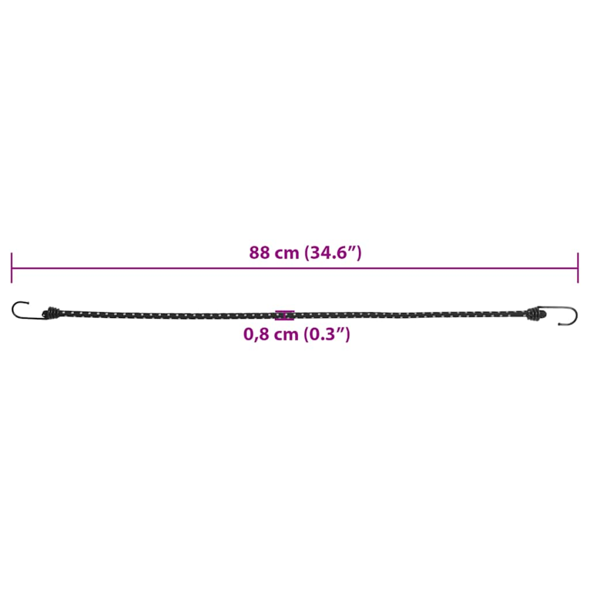 This bungee cord with hooks is easy to set and remove, and it is an ideal choice for fixing and organising something. Long-lasting and sturdy: This bungee cord is made of polypropylene and rubber and features an elastic design that maintains constant tension. As a result, it offers excellent elasticity and wear resistance, making it highly durable and unlikely to break.Easy to use and store: This bungee cord has two side hooks, which are not easy to deform. Additionally, it is light in weight, making it easy to carry and store.Practical design: This bungee cord with hooks has a single reflective strip to ensure visibility at night and safety for people who walk around at night.Multiple applications: This bungee cord with hooks has high elasticity and can be used to transport and tighten items. Additionally, it can also be used for securing tents, tarpaulins, banners, and luggage straps.