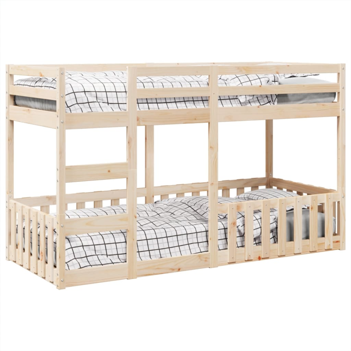 This bunk bed frame is a space-saving solution with two beds in one, making it ideal for accommodating guests, sleepovers, and families with multiple children. Stable and long-lasting frame: Solid pinewood is known for its strength and durability. Its straight grains and distinctive knots contribute to its rustic charm. Maximise space utilisation: This bunk bed frame cleverly combines two single beds into one, offering a space-saving solution for accommodating guests, sleepovers, and families with multiple children. Easy to climb up and down: This bed frame features a built-in ladder, providing convenient access for users to climb up and down. Guardrails for enhanced safety: This bed frame is equipped with guardrails to prevent you from falling out of bed while sleeping. Low floor bed: The bed frame below is specifically designed to be low to the ground, making it safer and more accessible for your child to move around and get in and out of bed independently. Warning: To prevent it from tipping over, this product must be used with the provided wall attachment device. Good to know: The mattresses are not included with this bed. We do offer a various selection of mattresses. You can check our shop for a matching mattress. Screws and plugs for inside the wall are not included. We advise to find and use screws and plugs suitable specifically for your walls. If you're not sure, you can consult with a professional. Please read and follow each step of the instructions.