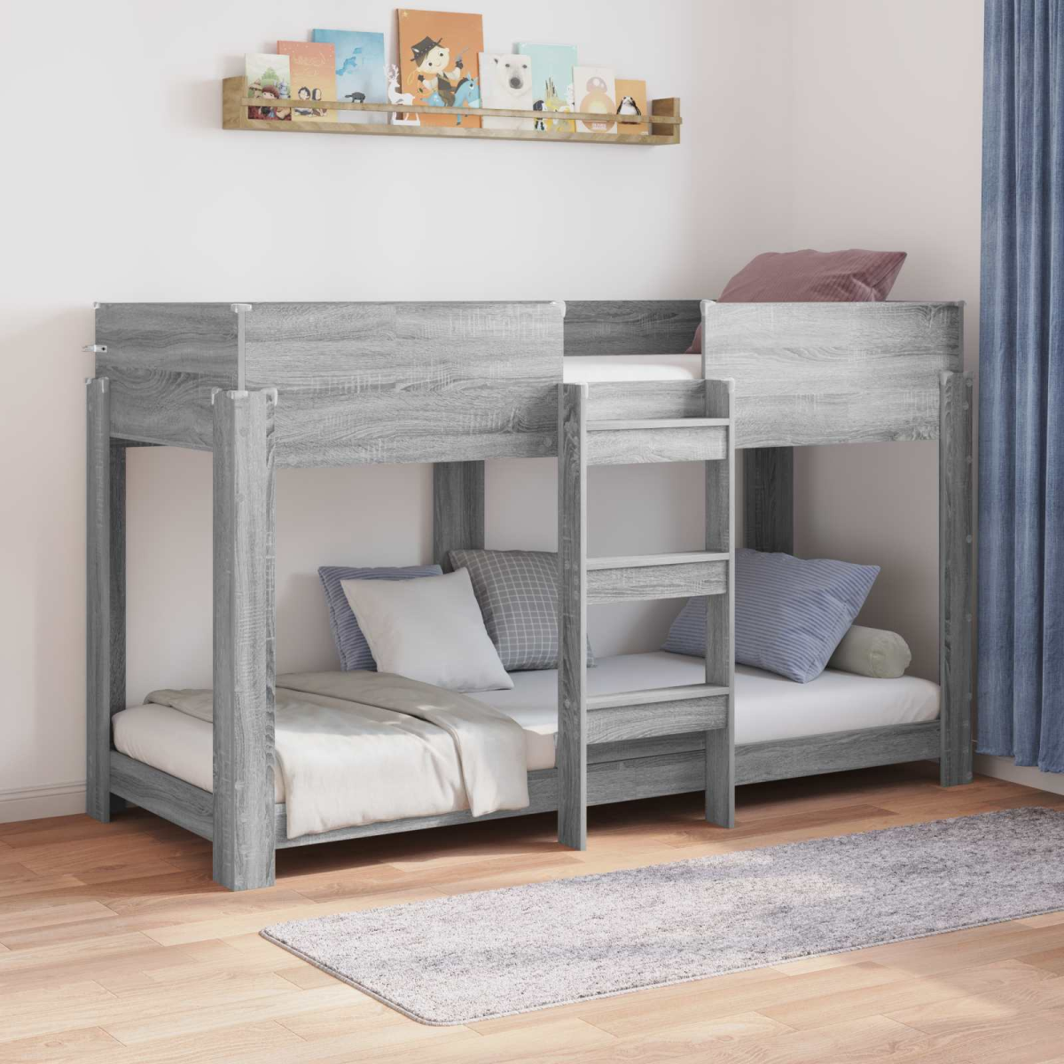 This Modern Bunk Bed for Kids is a stylish, space-efficient piece perfect for any child's bedroom. Its sleek, simple design complements a variety of décor styles, illustrating the simplicity and functionality of modern aesthetics while offering two well-separated sleeping areas that are ideal for siblings or sleepovers. Crafted for indoor use, this bed is designed to make the most of limited space, making it a valuable addition to any family home. Materials: The bed is thoughtfully crafted from engineered wood, chosen for its robust structure and contemporary finish. This material ensures durability while providing a smooth surface that is easy to maintain and attractive to look at. Its make means it can withstand the demands of an active child's room. Included Components: Delivered as a complete set, this bunk bed includes two sleeping areas and engineered wood frames. The engineered wood offers strength and rigidity, ensuring a solid foundation for long-lasting use in any bedroom setting. The attention to the construction details ensures a safe and secure sleep environment for children. Features /Function /Design: Characterized by modern simplicity, the bunk bed incorporates clean lines and minimal ornamentation. This design aspect not only looks appealing but also serves functional purposes, such as providing ease of movement around the room. Its functional design contributes to a tidy and organized space, reducing clutter while offering style. Recommended Uses: Perfect for children's bedrooms, the bunk bed is an efficient solution for maximizing space. Whether accommodating siblings in a shared room or creating a dedicated sleepover space, this bunk bed is adaptable to the ever-changing needs of a child's world, offering comfort and practicality. Care &Maintenance: To keep the bunk bed looking pristine, dust with a dry, soft cloth regularly. Avoid using harsh chemicals or abrasives to protect the finish. Regular checks ensure stability and safety, allowing it to remain a reliable fixture in the bedroom for years.