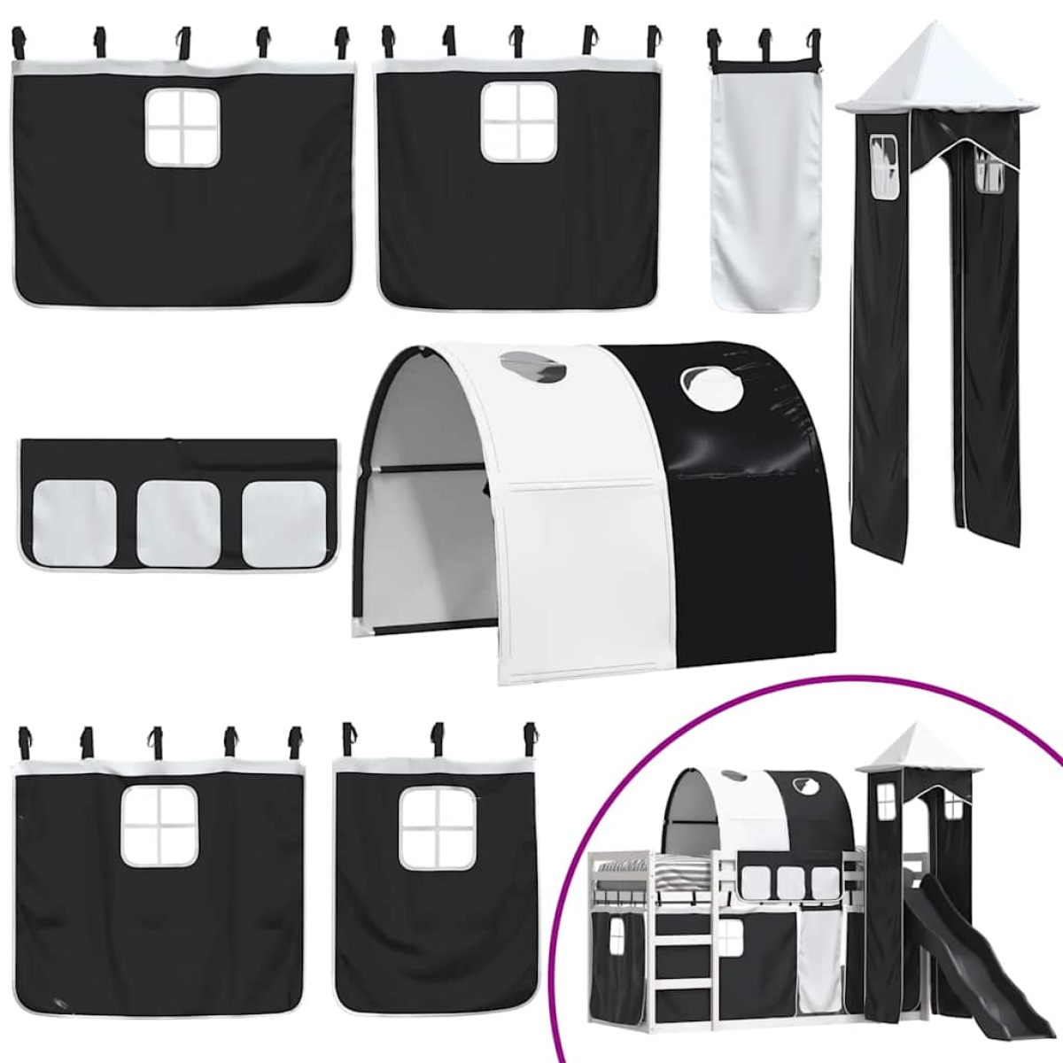 This wooden bunk bed is elegant and functional, making it a perfect addition to any room with limited space. Solid pine wood: This bunk bed is made of solid pine wood for stability and durability. Pine wood has a straight grain, and the knots give the material its signature, rustic look.Great fun: You can combine the curtains with the low bunk bed to create your child's secret base, providing great fun at bedtime and adding a focal point to the bedroom!Safety guardrails: The top bunk comes with safety guardrails on all 4 sides, so your child can sleep without worrying about falling off.Convenient ladder and slide: This double bunk bed has a fun slide that brings joy and turns their room into an indoor playground. The combination of a climbing ladder and slide makes bedtime livelier and more interesting for children.Sturdy slats: The plywood slats provide good weight distribution, ensuring that the mattress stays in place with every twist and turn of your body during sleep. Good to know:A mattress is not included with this bed. We do offer a various selection of mattresses. You can check our shop for a matching mattress. Warning:To prevent it from tipping over, this product must be used with the provided wall attachment device.