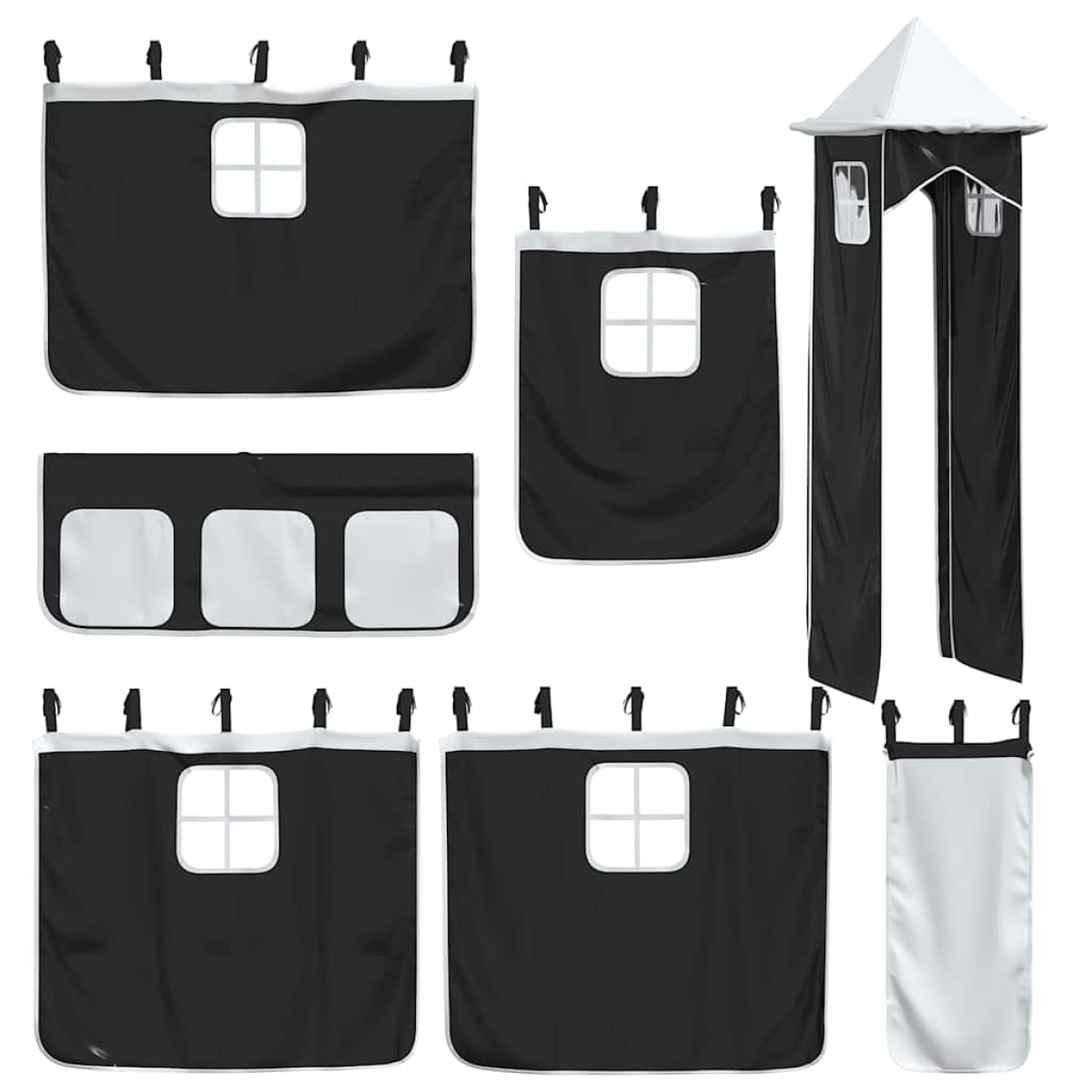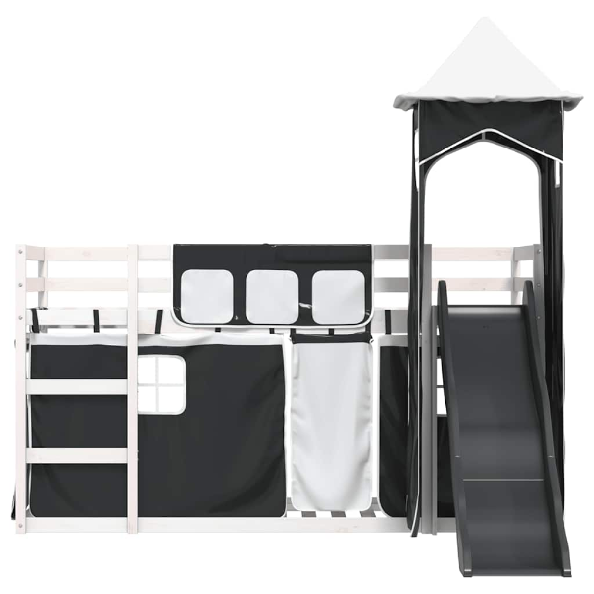 This wooden bunk bed is elegant and functional, making it a perfect addition to any room with limited space. Solid pine wood: This bunk bed is made of solid pine wood for stability and durability. Pine wood has a straight grain, and the knots give the material its signature, rustic look.Great fun: You can combine the curtains with the low bunk bed to create your child's secret base, providing great fun at bedtime and adding a focal point to the bedroom!Safety guardrails: The top bunk comes with safety guardrails on all 4 sides, so your child can sleep without worrying about falling off.Convenient ladder and slide: This double bunk bed has a fun slide that brings joy and turns their room into an indoor playground. The combination of a climbing ladder and slide makes bedtime livelier and more interesting for children.Sturdy slats: The plywood slats provide good weight distribution, ensuring that the mattress stays in place with every twist and turn of your body during sleep. Good to know:A mattress is not included with this bed. We do offer a various selection of mattresses. You can check our shop for a matching mattress. Warning:To prevent it from tipping over, this product must be used with the provided wall attachment device.