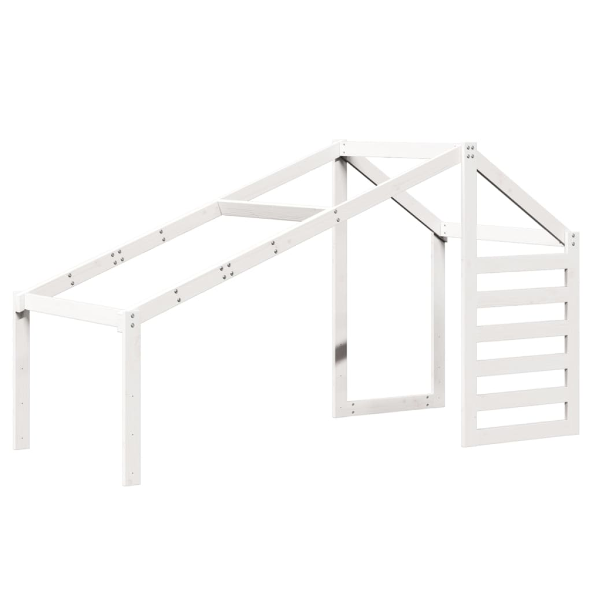 This kids' bunk bed with roof is elegant and functional, making it a perfect addition to any room with limited space. Solid pine wood: Solid pine wood is a beautiful natural material. Pine wood has a straight grain, and the knots give the material its signature, rustic look.Safe design: The loft bed is designed with safety in mind. It features guardrails to keep the user from rolling out while sleeping.Great fun: By combining the roof with your child's bed, you can create a hideaway that offers your kid lots of bedtime fun. This innovative addition will not only be a thrilling focal point but will also bring wonder and excitement to the kids' room.Suitable for limited space: The bed frame makes an excellent choice for any room with limited space, it provides two individual beds with compact design.Open side door: The roof features an open side door, providing easy access for your kids to get in and out of bed. Good to know:A mattress is not included with this bed. We do offer a various selection of mattresses. You can check our shop for a matching mattress.