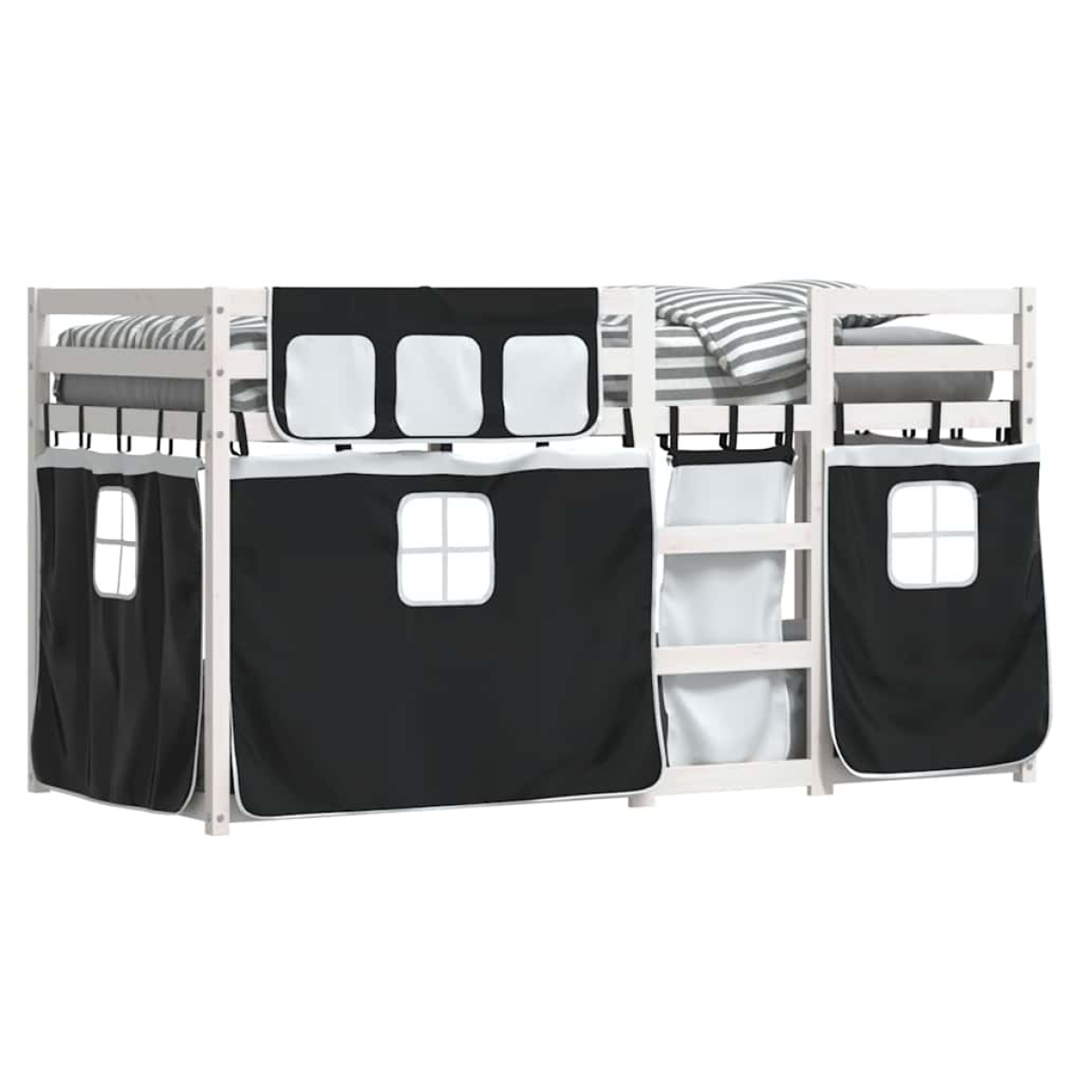 This wooden bunk bed is elegant and functional, making it a perfect addition to any room with limited space. Solid pine wood: This bunk bed is made of solid pine wood for stability and durability. Pine wood has a straight grain, and the knots give the material its signature, rustic look.Great fun: You can combine the curtains with the low bunk bed to create your child's secret base, providing great fun at bedtime and adding a focal point to the bedroom!Safety guardrails: The top bunk comes with safety guardrails on all 4 sides, so your child can sleep without worrying about falling off.Convenient ladder: This double bunk bed has a ladder that provides convenience for getting on and off the bed. It also brings joy and turns their room into an indoor playground. Good to know:A mattress is not included with this bed. We do offer a various selection of mattresses. You can check our shop for a matching mattress. Warning:To prevent it from tipping over, this product must be used with the provided wall attachment device.