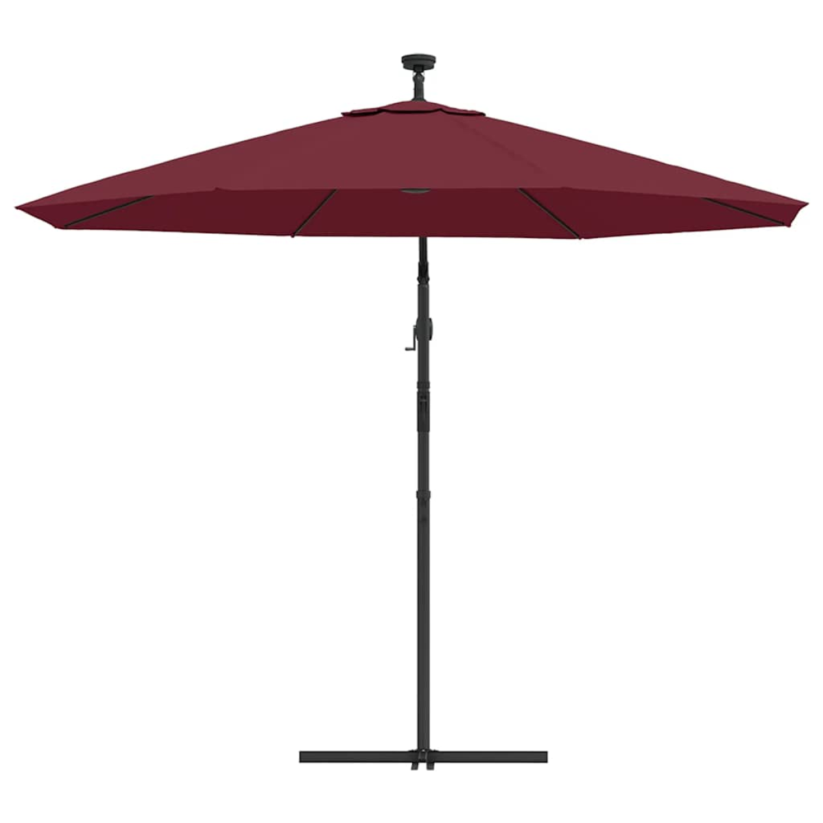 vidaXL Cantilever Garden Parasol with LED Lights and Steel Pole Wine Red