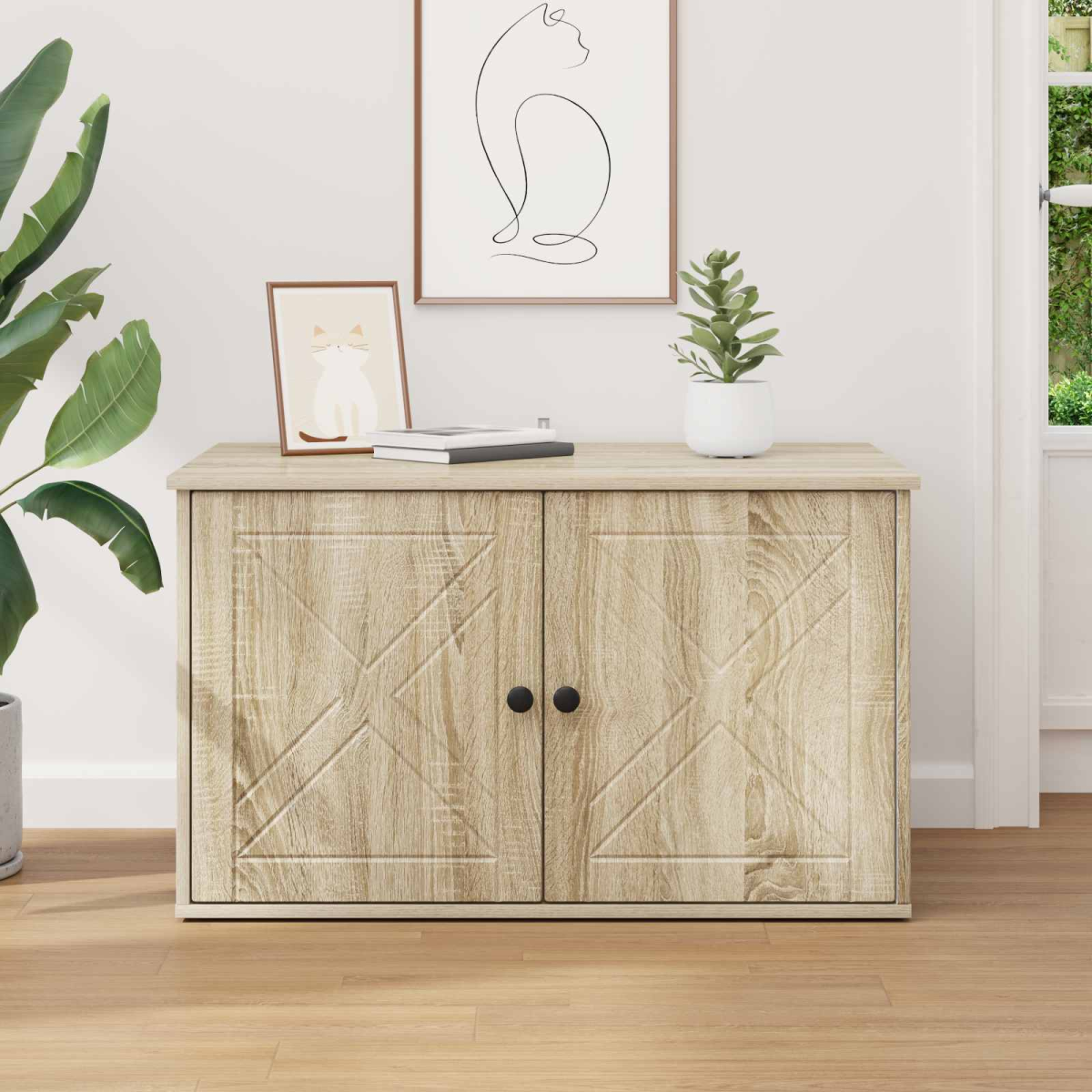 The Modern Cat House is an epitome of simplicity and functionality, designed to provide your feline friend with a stylish and comfortable refuge. Its sleek rectangular shape, made from robust engineered wood, blends seamlessly into any modern living room, adding a touch of elegance without overpowering the space. Engineered Wood Construction: Expertly constructed from engineered wood, this cat house ensures durability and sturdiness. The material choice offers longevity and resistance to general wear, making it an ideal retreat for your pet. Its finish contributes to a modern and polished look, enhancing the overall appeal of your living area. Simple Assembly Required: Designed for easy setup, this cat house comes with a complete set of assembly accessories. The process is straightforward, making it convenient for any pet owner to put together, providing a stress-free experience so your feline can quickly enjoy their new dwelling. Seasonal Versatility: Suitable for use during autumn and winter, this cat house provides a cozy spot for your cat to snuggle up as temperatures drop. Its design maintains a comfortable indoor environment, ensuring your pet stays warm and content throughout the colder months. Indoor Use Only: Crafted for indoor explorers, this cat house is perfect for living rooms and other indoor spaces. It serves not only as a resting area for your cat but also enhances your interior décor with its minimalist charm, creating an inviting space for all home members. Effortless Maintenance: Maintaining this cat house is simple: just wipe with a dry cloth to keep it clean. This ease of care ensures your cat's space remains neat, encouraging repeated use and providing a hygiene-friendly environment for your pet.