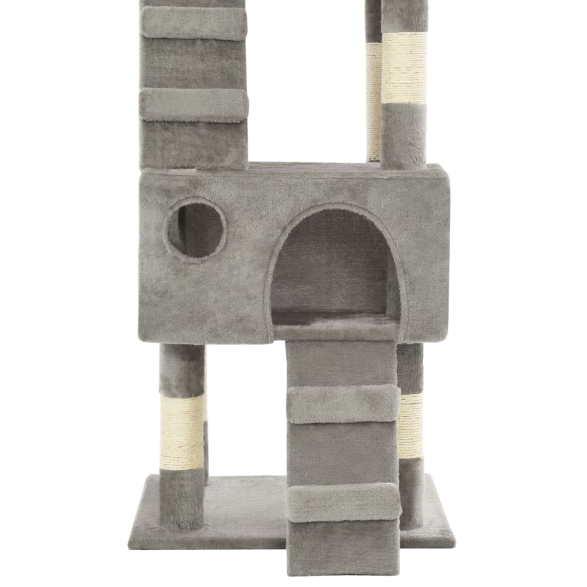 Give your feline friends a taste of luxury with our feature-packed cat tree! This multi-storey cats' play centre has a sturdy frame covered in soft, comfortable plush and will make the perfect retreat in which your cats can scratch, climb, perch, hide, and rest. Your feline friends can sharpen their claws on the scratching posts wrapped in sisal rope, which provides a healthy outlet for their scratching instincts. They will also enjoy chasing after each other while jumping up and down this fun play centre. When they've had enough playtime fun, your little friends will love resting on the upper platforms where they have a better view. They can also hide in the cosy houses to take a nap. With all these fun features, this cat playhouse will become your furry friends' favourite hangout spot! The cat tree is easy to assemble.