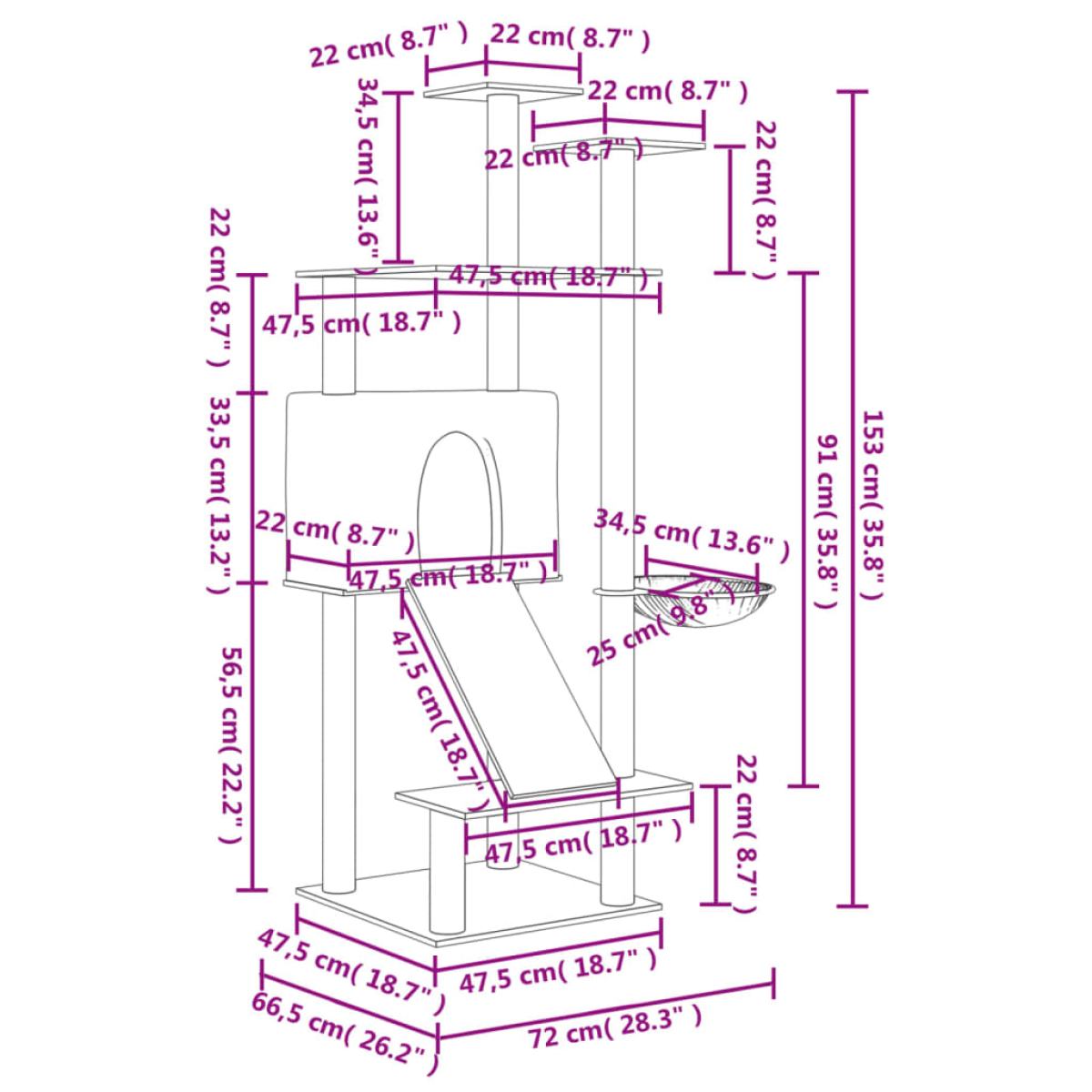 vidaXL Cat Tree with Sisal Scratching Posts Light Grey 153 cm