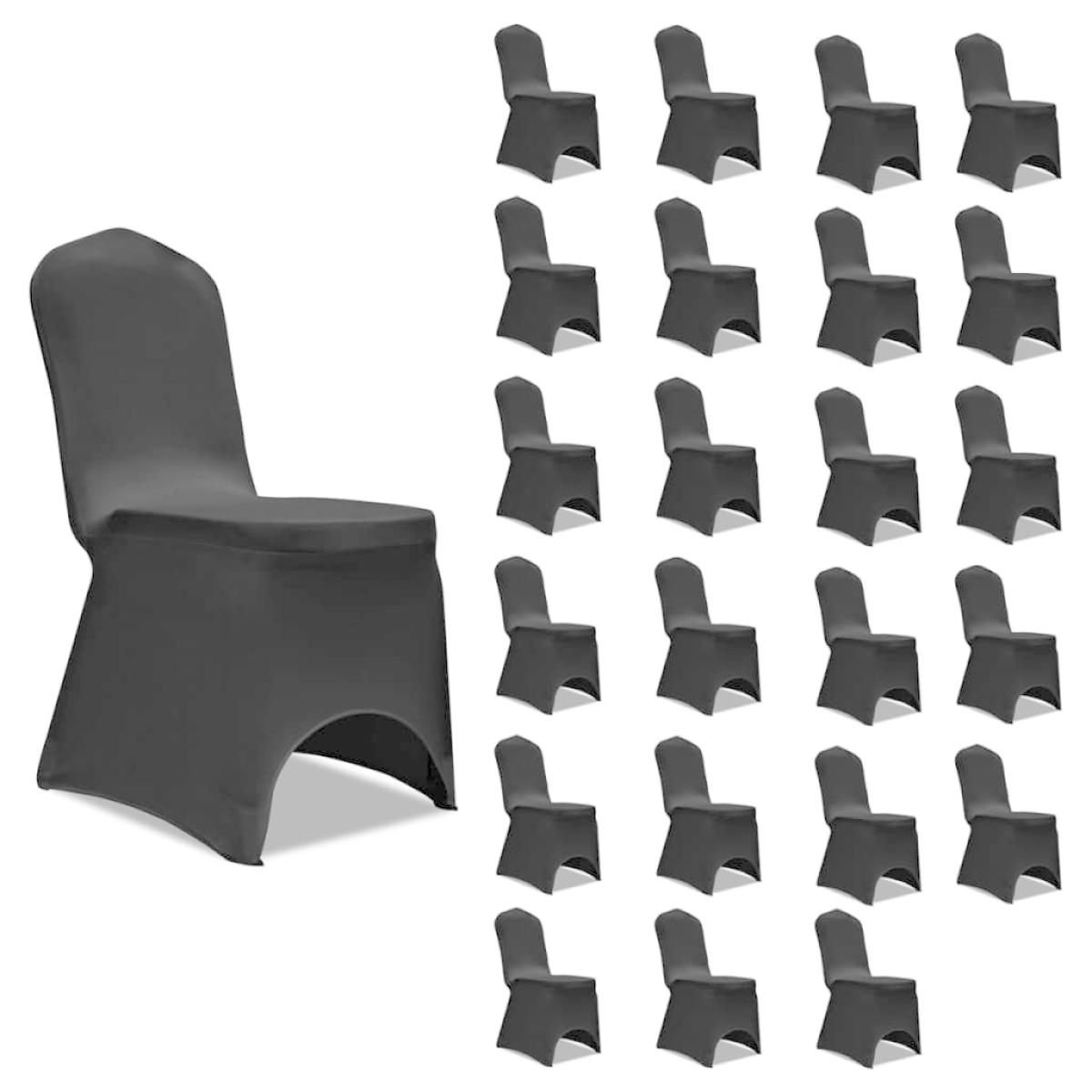 This chair cover will undoubtedly embellish your event, including weddings, banquets, conferences, trade shows, etc. It fits almost all types of chairs with a total height of up to 100 cm. Sewn from stretchy fabric, our chair cover can be simply stripped down and stretched over the feet of the chair. Due to its contained 10% spandex, it is a better fit and ensures a secure grip. Treat yourself with this chair cover, and turn your chairs into a true piece of art. Delivery includes 24 pcs of chair covers.