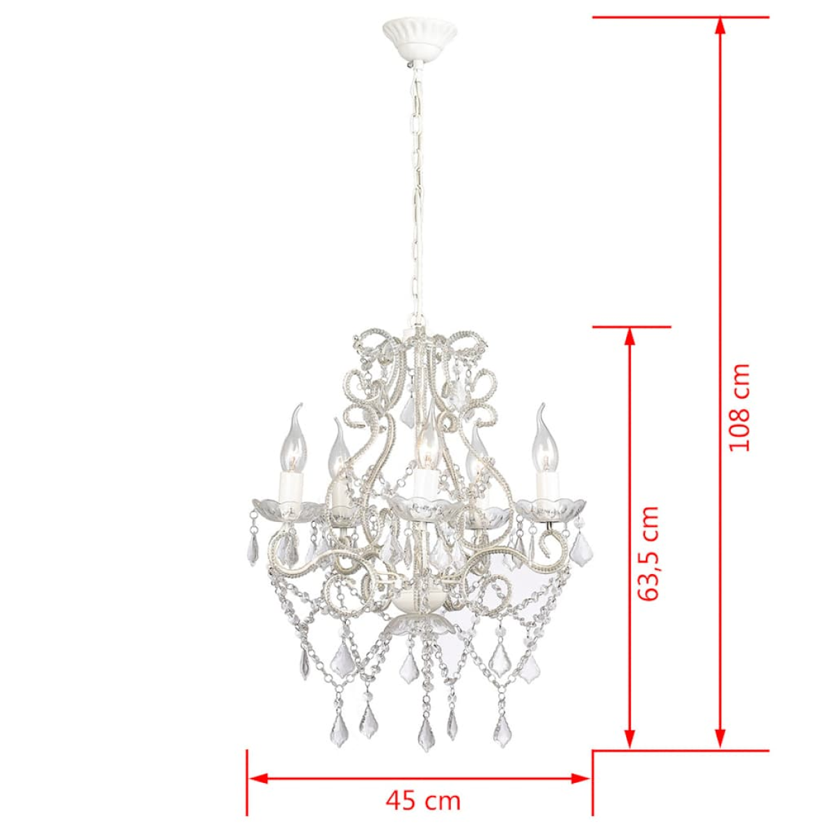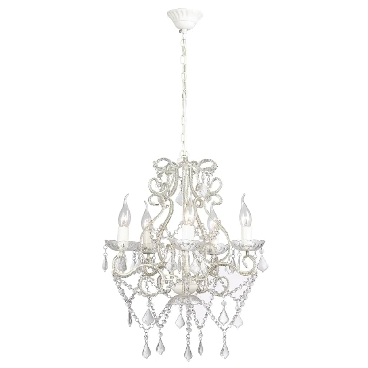 This gorgeous crystal chandelier, with a classic and elegant design, is surely an eye-catcher in any room and is ideal for both private and industrial purposes. Thanks to its royal crystal design, this stunning chandelier is perfect for your foyer, dining room or living room. The high-quality 2800 crystal beads, made of glass and shining with real clarity, will capture and reflect the light effectively, and the spectrum provides you with a magnificent play of colours. With this elegant crystal hanging lamp, you are able to decorate your home in a luxurious way. This chandelier requires 5 E14 bulbs and please note that bulbs are not included in delivery.