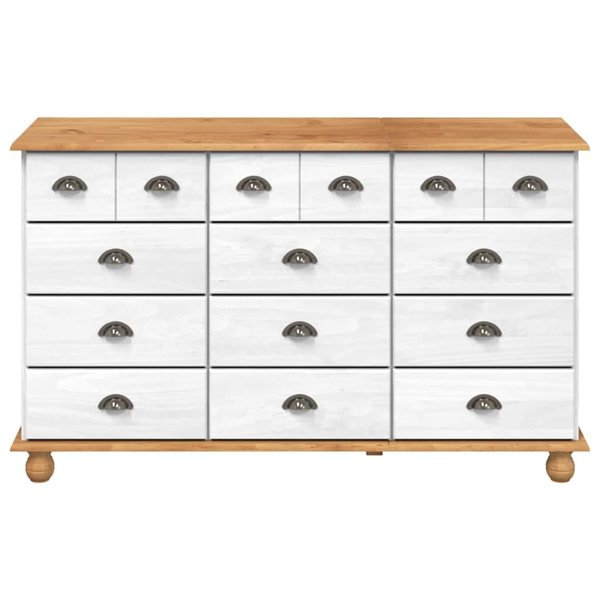 This Chest of Drawer embodies a modern design characterized by clean lines and functional elegance, ideal for any living room setting. Its simplistic yet sophisticated structure is expertly crafted from solid pine wood, ensuring durability and a sleek aesthetic. Beneath its unassuming appearance lies substantial storage, making it a practical choice for organizing and decluttering spaces in the home. Solid Pine Construction This chest is crafted from solid pine wood, ensuring a sturdy build and a beautiful natural finish. The pine wood is known for its robust properties and fine grain, providing both durability and an elegant touch to modern interiors. Drawer Design Featuring multiple drawers with bin pull handles, this chest offers ample storage space for household essentials like linens, clothing, or keepsakes. The drawers glide smoothly, ensuring easily accessible storage solutions for diverse organization needs. Modern Aesthetic With its emphasis on minimalism and functionality, this chest fits seamlessly into contemporary settings. Its clean lines and lack of ornamentation allow it to complement a variety of decor styles, adding understated elegance to your space. Functional Dimension Dimensions stand at 79 x 40 x 133.5 cm, making it a versatile option for diverse living room layouts, providing ample storage while retaining a compact footprint. Care Instructions Regular maintenance involves dusting with a dry cloth to preserve its polished surface. Avoid using harsh chemicals, ensuring the chest retains its natural charm and long-lasting appeal.
