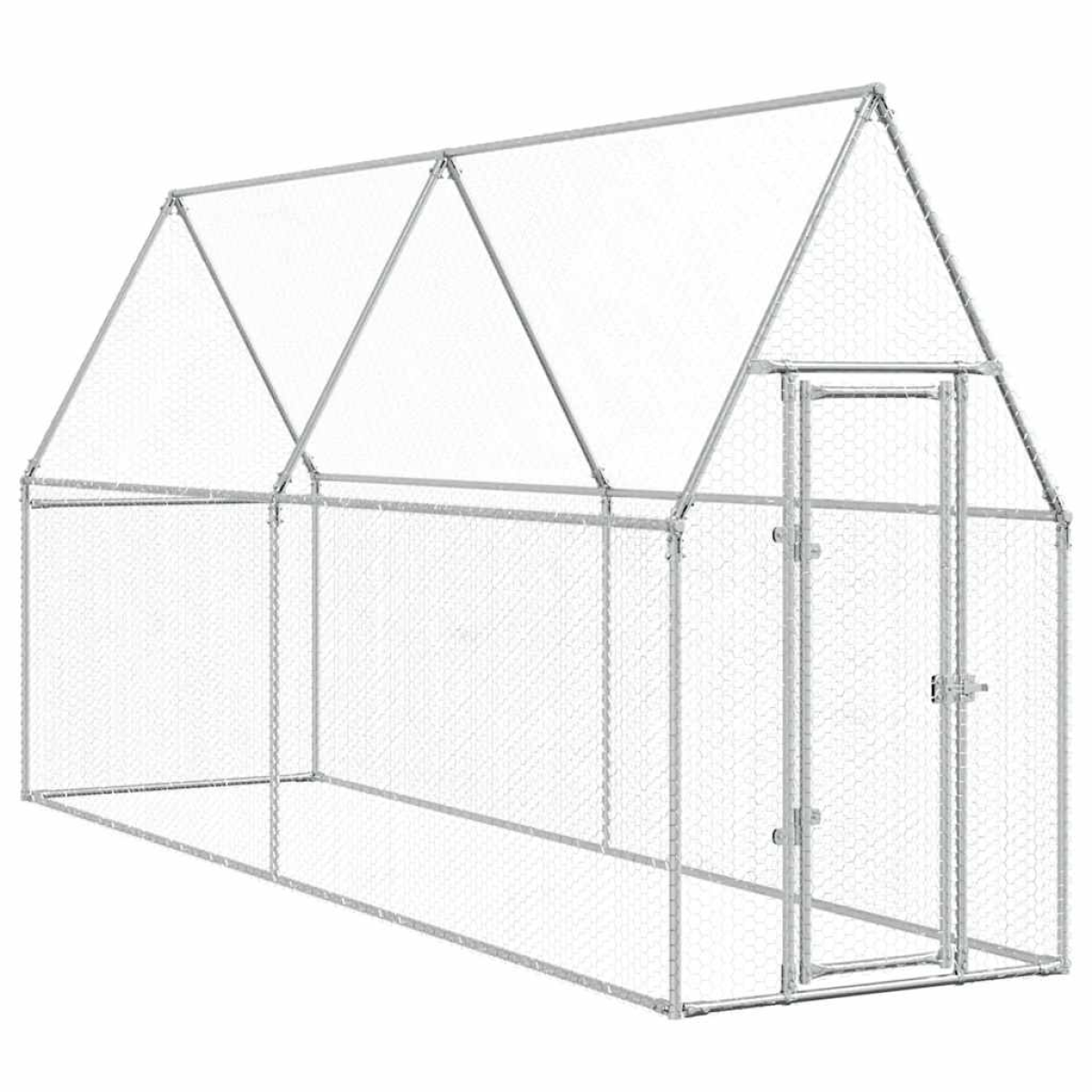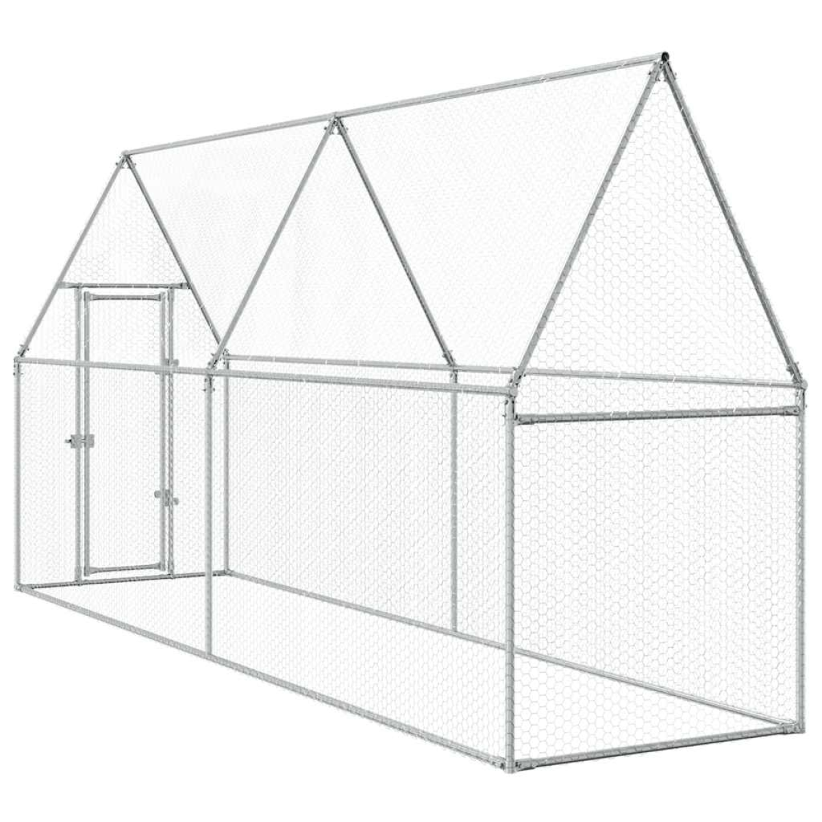 This practical and spacious chicken cage is a perfect choice as an outdoor enclosure for your chickens, hens, ducks and other small animals and keeps them comfortable. Durable and sturdy frame: The chicken coop is made of galvanised steel. Steel is an exceptionally hard and strong material. It offers sturdiness and stability. Galvanisation provides better protection against corrosion and is useful for products that'll be used outdoors as well as in harsh environments.Ample activity room: The chicken cage provides your chickens with ample activity room to walk around with ease. Besides, it is also suitable for other small animals such as birds, rabbits, ducks, geese, etc.Extra security: The hinged door with a lockable latch system of the walk in chicken coop ensures extra security and safety for your chickens.