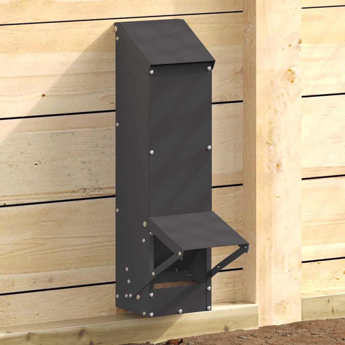 This modern chicken feeder combines structure and function, designed for both chickens and their keepers. Its clean lines and durable construction make it a fitting addition to any garden or terrace. Crafted to withstand outdoor conditions, this feeder’s sleek and minimalist aesthetics enhance any environment, proving its versatility and charm. Ideal for those who appreciate simplicity, this feeder provides a practical solution to poultry feeding while blending seamlessly into its surroundings. Robust Steel Build Made from reliable steel, the chicken feeder boasts a long-lasting structure capable of standing up to the rigors of everyday use. Its solid craftsmanship ensures that it remains a steadfast component of any outdoor poultry setup for years. Weatherproof Design The feeder is crafted to stand up against the elements. Its canopy design ensures that the feed stays dry even during adverse weather conditions, providing a consistently protected food source for your poultry. 5 kg Holding Capacity With its generous 5 kg capacity, this feeder accommodates plenty of feed, minimizing the need for constant refilling. It offers peace of mind, especially for poultry caretakers who need reliable feeding solutions during their busy schedules. Indoor and Outdoor Suitability This feeder is apt for both indoor and outdoor use, making it a versatile option. Whether placed inside your chicken coop or displayed in your garden, it fulfills its purpose effectively while maintaining a stylish presence. Easy Maintenance Maintaining this feeder is hassle-free, as it requires only a quick wipe with a dry cloth to remain in top shape. Its practical design ensures it remains a clean and efficient feeding solution, simplifying poultry care.