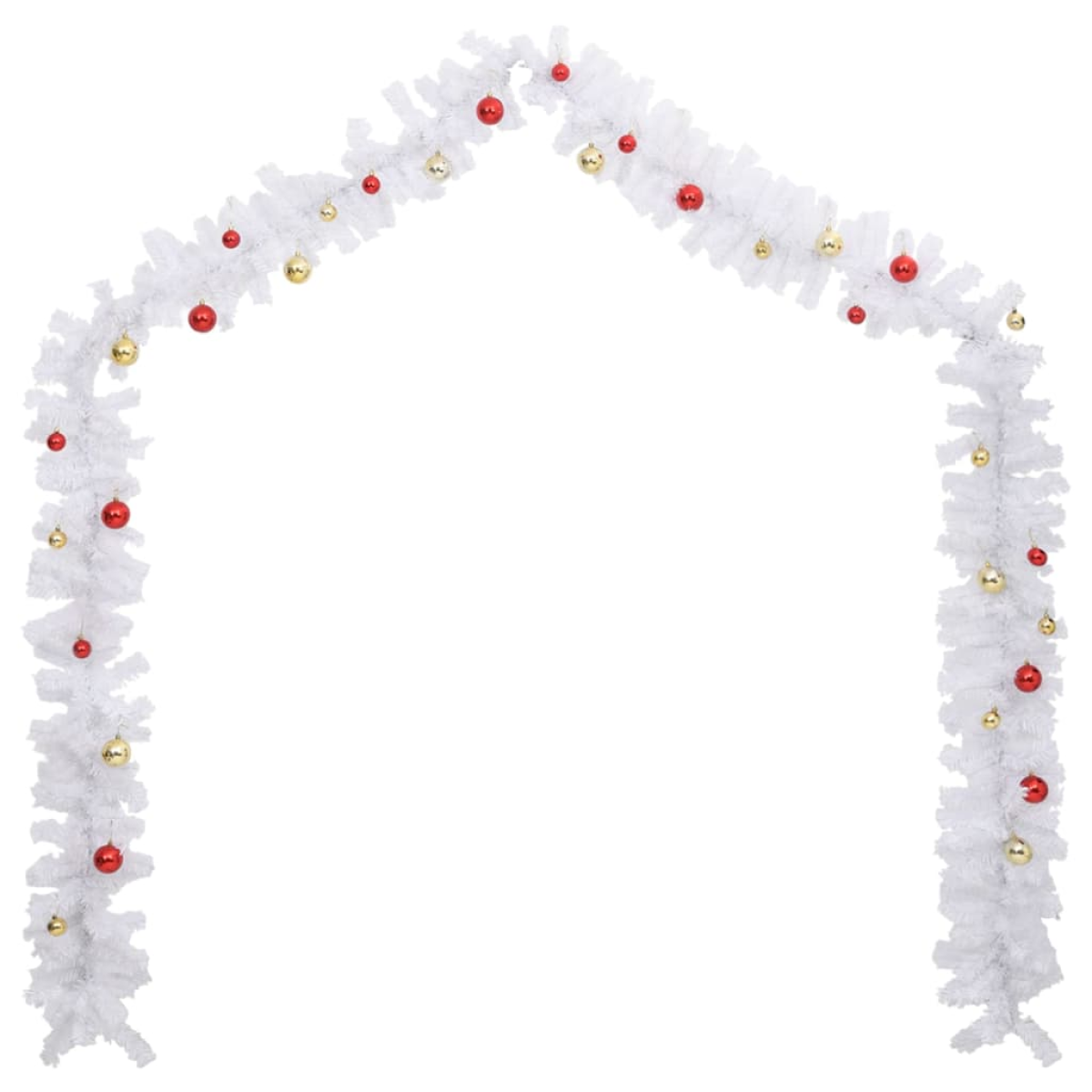 vidaXL Christmas Garland Decorated with Baubles White 5 m