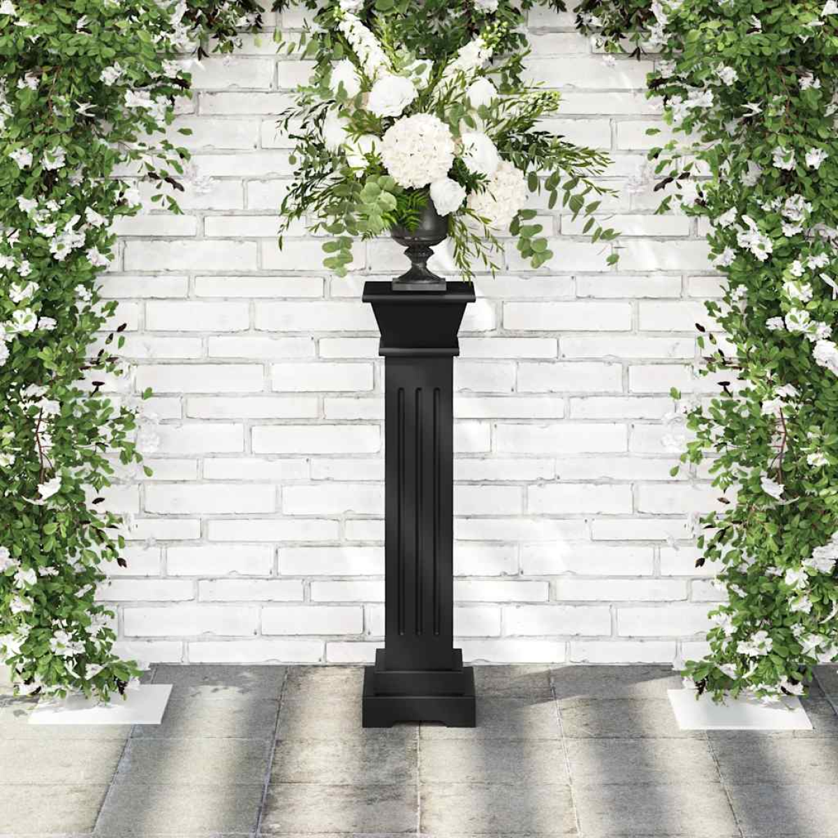 This plant stand, with its clean lines and classic design, will make a beautiful addition to your bedroom, living room, patio, hallway, or wedding venue. You can place your favourite flowers or potted plants on the pillar's large capital. The MDF construction makes the stand strong and stable. It is easy to clean with a damp cloth.