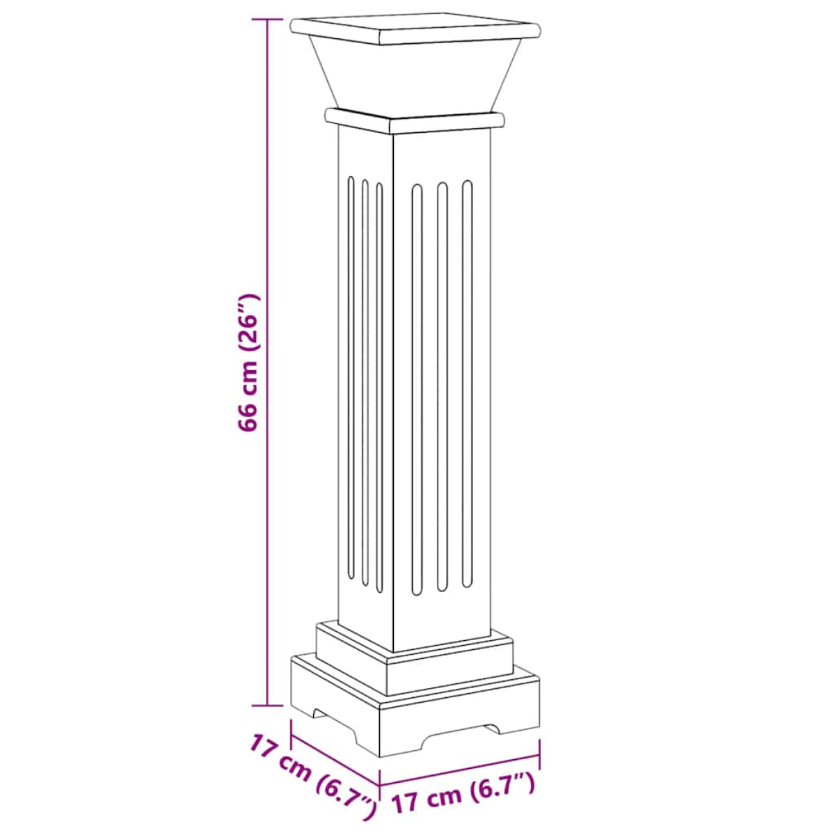 vidaXL Classic Square Pillar Plant Stand Black 17x17x66 cm MDF