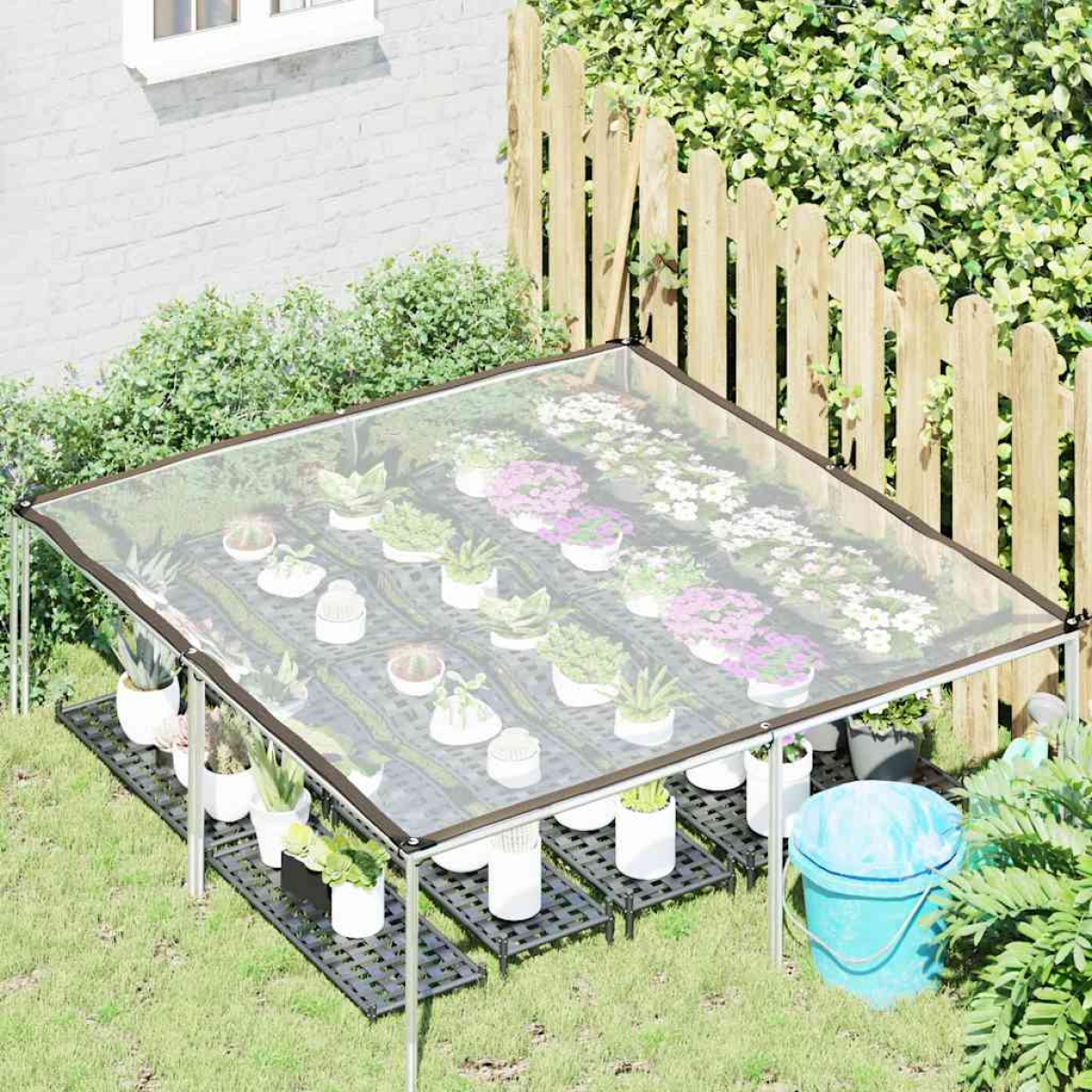 This clear tarpaulin has a variety of functions, such as covering outdoor and indoor usage. Protect your garden furniture and other objects with this tarpaulin. Durable and water-resistant material: The clear tarpaulin is made of polyethylene, and the edges have black ribbon and six-row machine stitch lines to fix, making it water-resistant, durable, and long-lasting. With a transparency of about 70%, you can check the covered object without having to remove the tarpaulin.Practical eyelets: The clear tarpaulin is equipped with eyelets at four corners and along the edges for easy fastening. The distance between each eyelet is approximately 100 cm.Wide applications: This tarpaulin can be used to shield outside swings and animal cages from rain and dust. It can also be used as a cargo tarp, a door curtain, a tarp for bicycles or e-bikes, and more.Easy to store: This clear tarpaulin is easy to fold down to a compact size for easy storage in small areas or carrying out.
