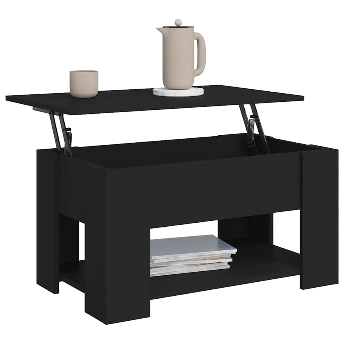 An essential part of every living space: coffee tables! Bring this versatile coffee table to your home right now! Convenient lift-top design: The tabletop of this side table can be smoothly lifted to a comfortable height, converting it to a spot where you can work or dine.Premium material: The engineered wood is of exceptional quality with smooth surface and also features strength, stability and resistance to moisture.Ample storage space: The hidden storage beneath the rising tabletop makes it easy to keep books or other items, giving sufficient surface for daily necessities, snacks or laptop.Versatile table: Featuring a unique design, this modern coffee table can serve as a temporary dining table and even a computer desk, which makes it absolutely an excellent investment and addition to any limited space.