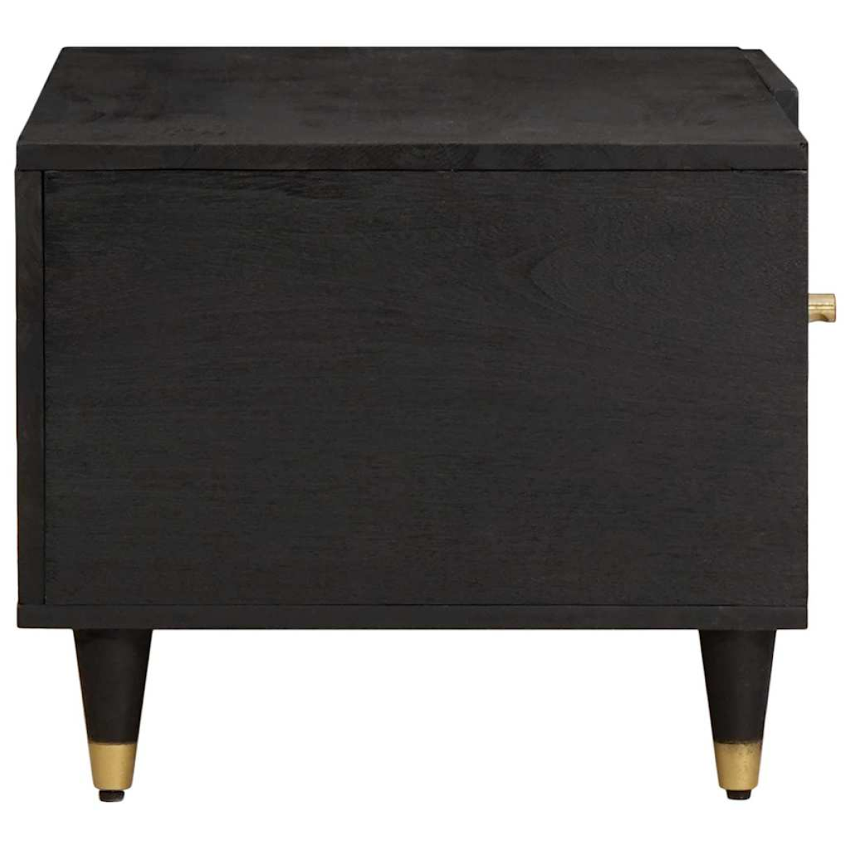This Modern Coffee Table offers a stylish and functional addition to any living room space. Crafted to enhance both aesthetics and utility, it serves as a central focal point with its sleek design. Its minimalist yet elegant structure is versatile for various interior styles, providing a sophisticated touch. Ideal for supporting beverages, decorative objects, and daily living essentials, this coffee table combines beauty with practicality and caters to those who appreciate contemporary design elements. Its distinguished build and artistic flair make it suitable for enriching your living area with both form and function. Mango Wood: Made from solid mango wood, this table offers both beauty and sustainability. The rich, natural grain of the wood adds a touch of organic elegance to any room, while its sturdy build ensures reliability for everyday use. Brass Accents: Featuring brass knobs and tapered legs, this table combines elegance with functionality. The brass elements amplify its luxurious appearance and blend seamlessly with a variety of decor styles, adding a refined metallic touch to your space. Concealed Storage: Thoughtfully designed with hinge doors, this modern coffee table provides hidden storage space. Perfect for stowing away magazines and remotes, it maintains a tidy and organized look in your living room. Handcrafted Detailing: Adorned with a hand-painted front and matte finish, it embodies artisanal craftsmanship. This attention to detail enhances the overall aesthetic, giving it an eye-catching antique appeal while remaining fundamentally modern. Simple Care: Maintain its pristine condition by wiping it with a dry cloth. This easy maintenance keeps the table looking new, making it a steadfast piece for busy households and entertaining environments alike.