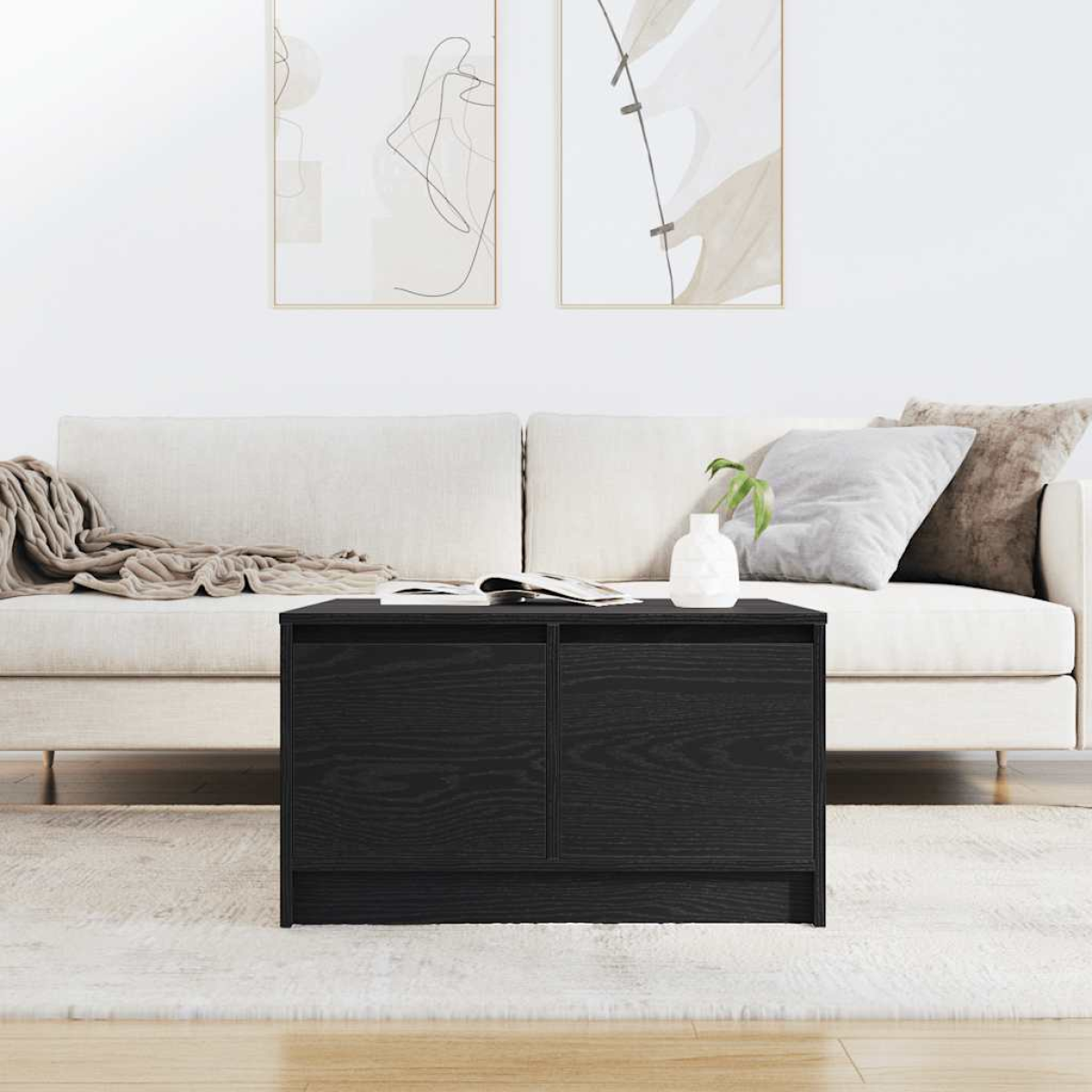 The coffee table offers storage with multiple drawers, keeping your space tidy and organised while adding both practicality and aesthetics to your living space. Stable and durable material: Engineered wood is a durable and stable material with a smooth surface that is resistant to moisture, warping, and splitting, making it a reliable choice for a variety of projects.Ample storage space: The coffee table provides multiple drawers for keeping your magazines, books, DVDs, remote control and other small items well-organised and within reach.Sturdy and strong tabletop: The robust tabletop provides a reliable surface for keeping your essentials within easy reach, making it ideal for everyday use. Whether you’re placing drinks, books, or decorative items, its durability ensures it can handle various tasks with ease.Versatile functionality: The coffee table effortlessly adapts to various settings, from serving snacks and drinks during gatherings to displaying books and décor. Its clean-lined design ensures seamless integration into any space, making it perfect for living rooms, offices, or cosy reading nooks.Easy to maintain: Thanks to its smooth surface, the coffee table is easy to clean with a damp cloth and requires less maintenance.