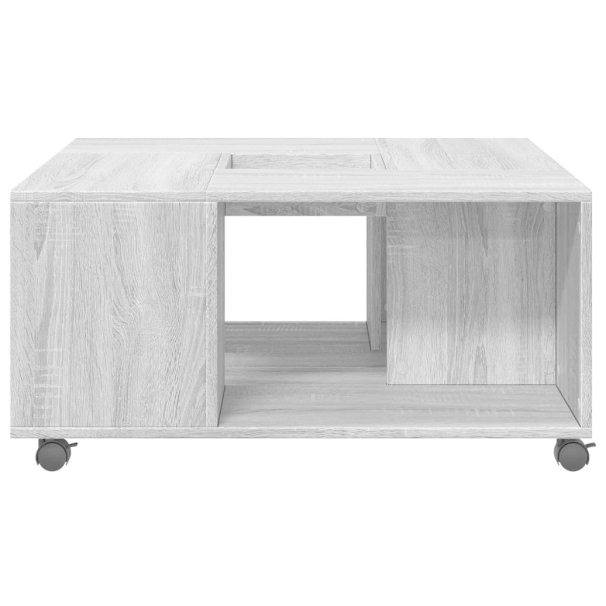 Combining functionality and beauty, this coffee table will be the focal point of your room.Stable and durable material: Engineered wood is a durable and stable material with a smooth surface that is resistant to moisture, warping, and splitting, making it a reliable choice for a variety of projects.Ample storage space: The coffee table with an open design has four compartments and offers ample storage space to keep your essentials well organised and within reach.Easy to move: This tea table, with the included four swivel wheels, can be easily moved to the desired place. The two wheels are lockable, which keeps the cabinet in position and adds stability.Stable and sturdy tabletop: The sturdy tabletop is ideal for placing your drinks or any other necessities you need close at hand.Easy to maintain: Thanks to its smooth surface, the side table is easy to clean with a cloth and requires less maintenance.