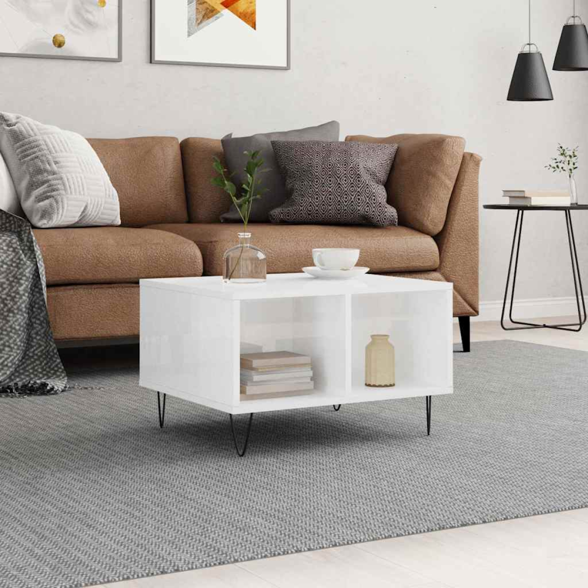vidaXL Coffee Table High Gloss White 60x50x36.5 cm Engineered Wood