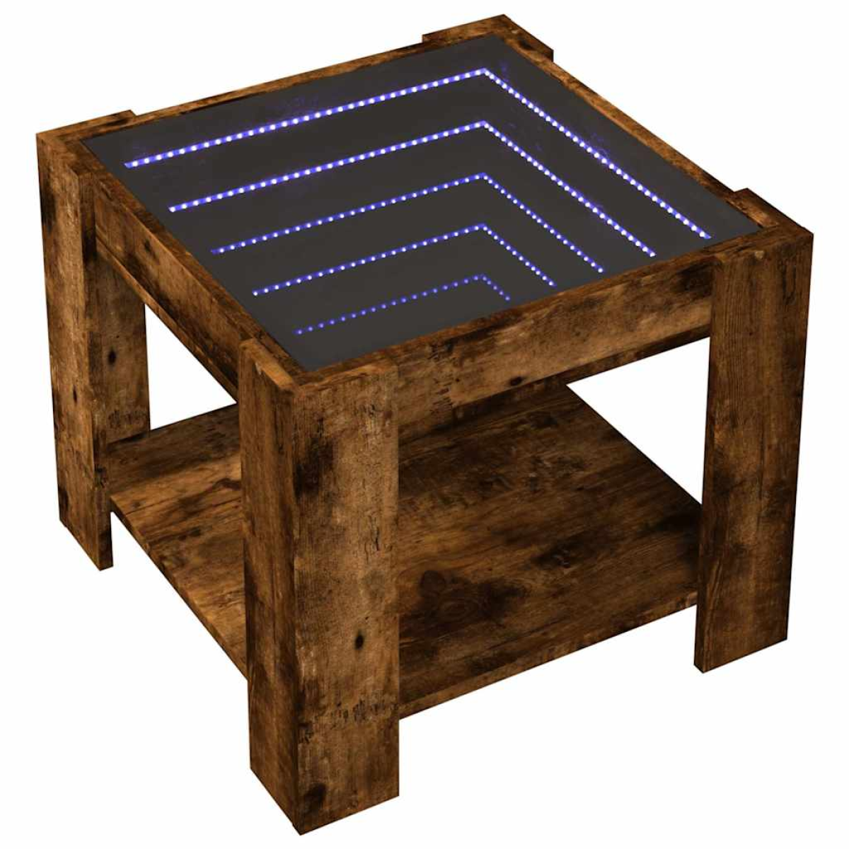 vidaXL Coffee Table with LED Smoked Oak 53x53x45 cm Engineered Wood