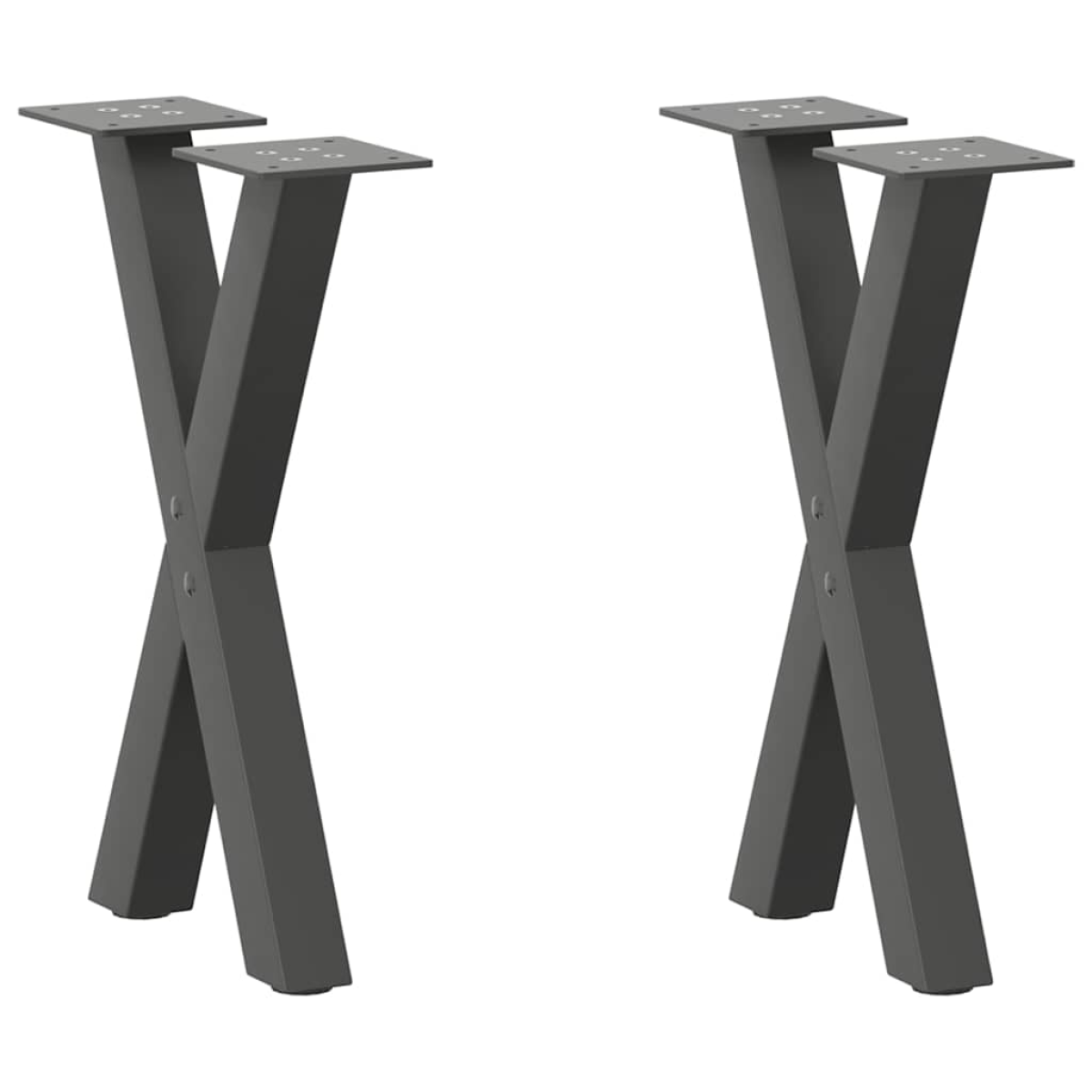 These coffee table legs combine form and function. It's an ideal choice for customising your coffee table. Durable material: This furniture table leg is made of powder-coated steel, making it sturdy and long-lasting.Sturdy structure: The metal table leg's X-shaped design ensures it can support a heavy tabletop.Practical design: This desk leg includes adjustable foot levelers, ensuring stability even on uneven floors and minimising floor scratches. Additionally, the bracket features pre-drilled holes and delivery-included screws, which can be used for fixing the leg to the tabletop (not included), making it easy to assemble.Modern aesthetics: The table leg has clean lines and a geometric design to improve the furniture's overall look. And it goes well with any tabletop of a suitable size. Good to know:The delivery only contains table legs, the tabletop is not included.