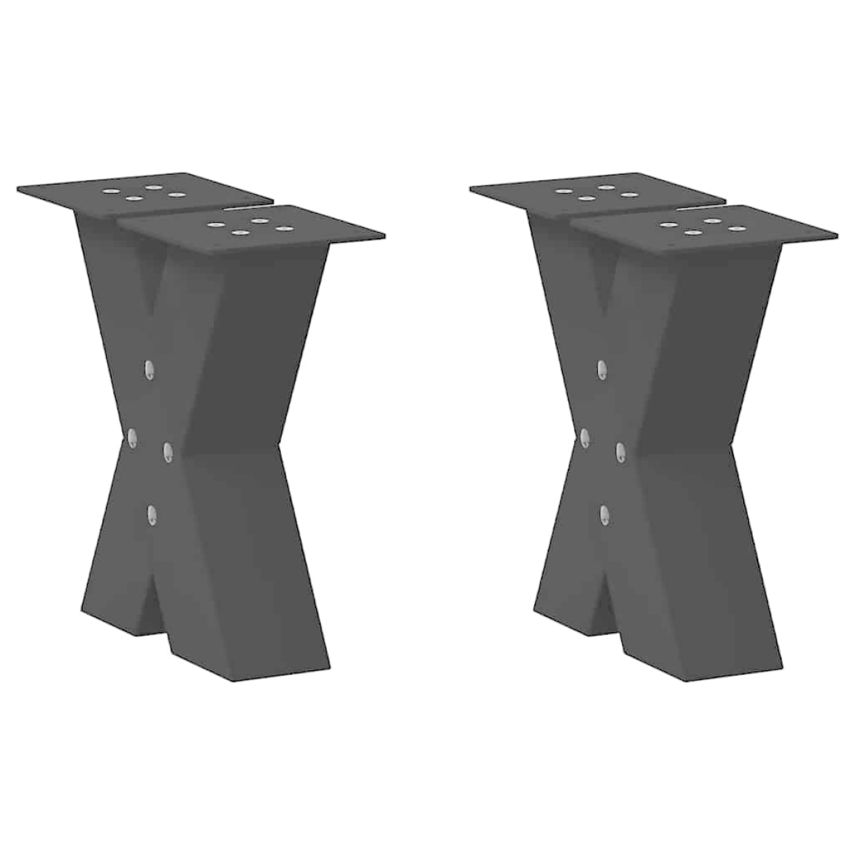 These coffee table legs combine form and function. It's an ideal choice for customising your coffee table. Durable material: This furniture table leg is made of powder-coated steel, making it sturdy and long-lasting.Sturdy structure: The metal table leg's X-shaped design ensures it can support a heavy tabletop.Practical design: This desk leg includes adjustable foot levelers, ensuring stability even on uneven floors and minimising floor scratches. Additionally, the bracket features pre-drilled holes and delivery-included screws, which can be used for fixing the leg to the tabletop (not included), making it easy to assemble.Modern aesthetics: The table leg has clean lines and a geometric design to improve the furniture's overall look. And it goes well with any tabletop of a suitable size. Good to know:The delivery only contains table legs, the tabletop is not included.