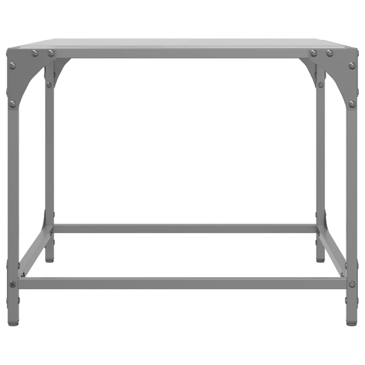 Add a touch of elegance to your living room with these stylish coffee tables! Glass top: The top of the side table provides a visible and ample surface to place snacks, drinks, vases, fruit bowls, or other decorative items.Durable material: The engineered wood is of exceptional quality with a smooth surface and features strength, stability and resistance to moisture.Sturdy and stable frame: The stainless steel frame of the living room table ensures sturdiness and stability.Easy maintenance: This coffee table with stain-resistant surface is easy to wipe clean and you can effortlessly keep the table looking its best.Simple design: This sofa table has a simple and modern design that complements any room decor.