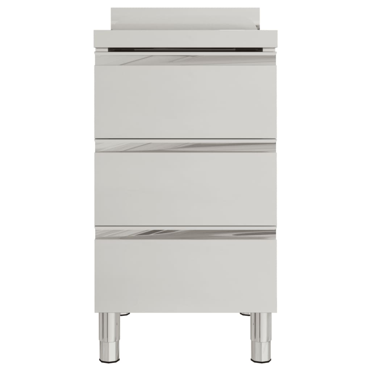 If you want to keep your kitchen supplies, this commercial kitchen cabinet is a perfect choice for you. It can be widely used in restaurant, hotel, food production, gastronomy use or garage, workplace and home use. Made of quality stainless steel, this cabinet is robust, anti-corrosive and easy to clean. Three drawers provides ample storage space for cleaning equipment and accessories. Adjustable feet keep the cabinet level on uneven floors. It also includes a 10 cm back splash and water pipe hole. You can find the commercial sink cabinet, drainboard cabinet and work table cabinet in our webshop. They can be connected with each other to meet your specific needs. Assembling accessories are included in delivery.