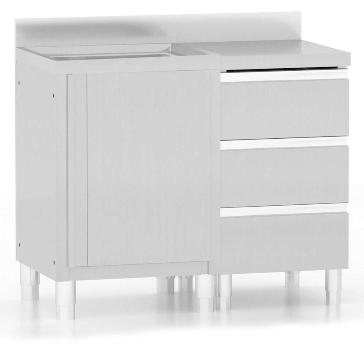 If you want to keep your kitchen supplies, the commercial kitchen cabinet is a perfect choice for you. It can be widely used in restaurant, hotel, food production, gastronomy use or garage, workplace and home use. Made of quality stainless steel, the storage cabinet is robust, anti-corrosive and easy to clean. The cabinet provides ample storage space for cleaning equipment and accessories. Additionally, the adjustable feet keep the cabinet level on uneven floors. The 10 cm backsplash and water pipe hole are also included. You can find the commercial drainboard cabinet and work table cabinet in our webshop. They can be connected with each other to meet your specific needs. Assembling accessories are included in the delivery.
