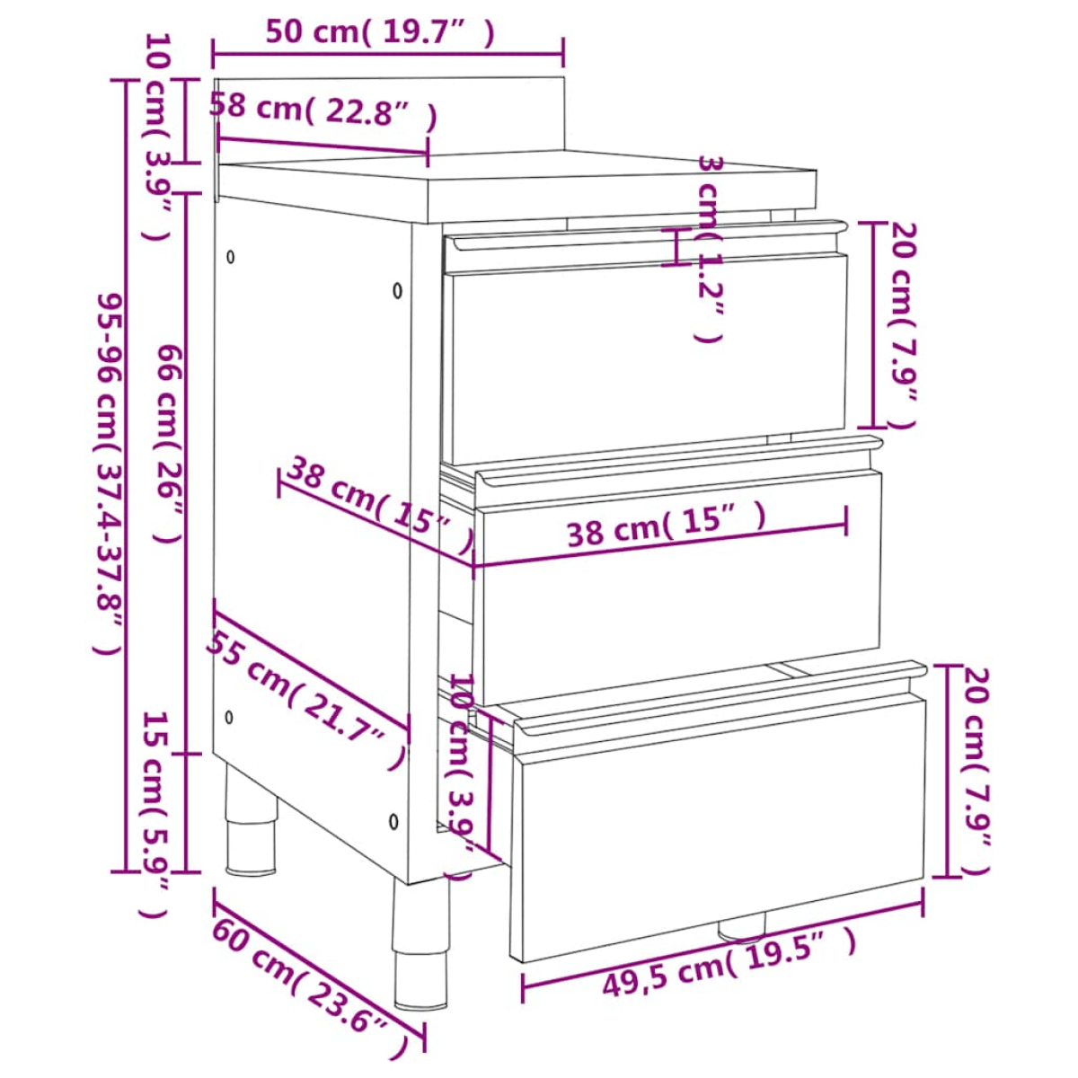 • Dimensions: 50 x 60 x (95-96) cm (W x D x H)