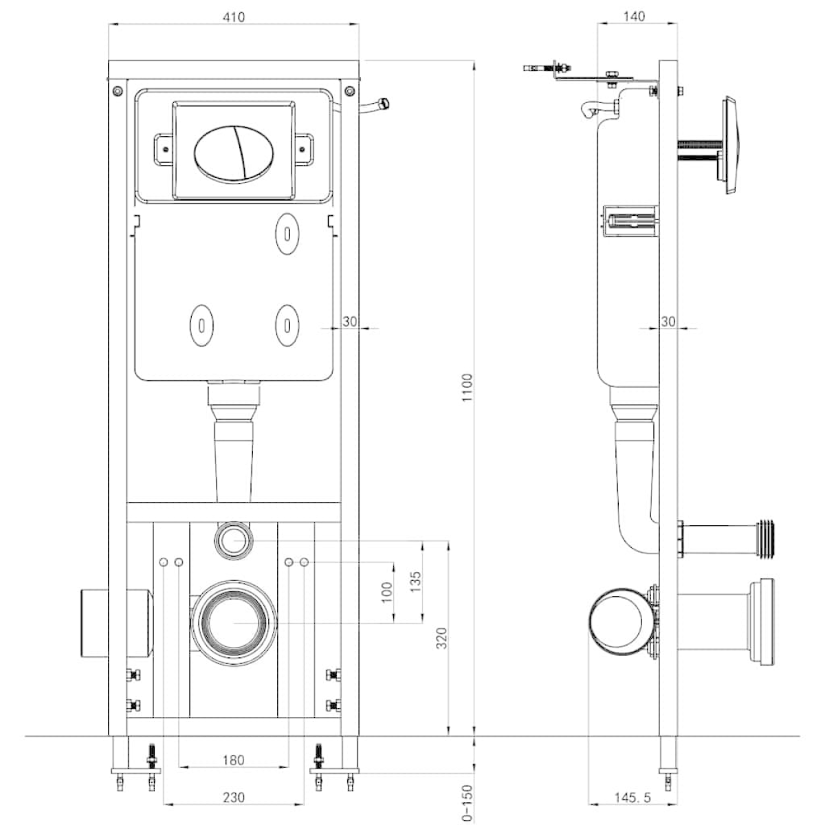 With this water-saving concealed cistern, designed for wall-hung toilets, you can upgrade your bathroom by hiding the unsightly water reservoir. The concealed cistern features good sound insulation thanks to the styrofoam plates. The flush has 2 buttons for the dual flush system (the smaller button for 3-4.5 L and the larger one for 6-9 L). The concealed cistern consists of a sturdy steel frame with height adjustable feet, and a durable HDPE water tank which is corrosion- and temperature resistant. Delivery includes a cistern and a mounting kit for pre-wall installation.