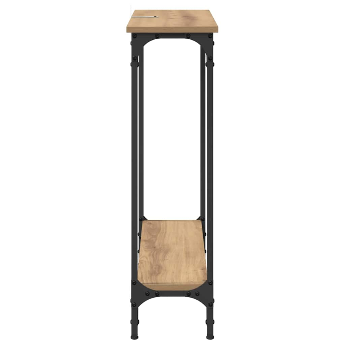 This Industrial Console Table balances aesthetics and function, perfect for urban homes. With a robust metal frame and classic engineered wood finish, it embodies industrial style. Its rectangular form brings a structured, elegant look, offering a convenient solution for display and storage against any wall. Material Composition: The console table's main surface is crafted from engineered wood, offering a smooth and refined matte finish. This material choice ensures a balance between longevity and visual appeal, allowing homeowners to enjoy its ambiance in their living spaces without frequent upkeep. Frame with Metal Accents: The table features a robust metal frame powder-coated for a matte appearance, enhancing its strength and offering a subtle urban design element. This fusion of textures not only adds appeal but provides a stable platform for decor and various stored items. Functional Storage Shelves: Featuring board shelves made of engineered wood, this table offers practical storage solutions for organizing various living room essentials. These shelves enhance convenience, allowing easy access to items like books, decorative pieces, or small electronics. Industrial Design Flair: Combining black finishes with a straightforward rectangular shape, the table exudes an industrial flair, fitting right into urban loft or warehouse-inspired interiors. Its design integrates seamlessly into contemporary settings, serving both aesthetic and functional roles. Easy Care and Maintenance: Keeping this table clean is simple. A quick wipe with a damp cloth removes dust, and the table is maintained by avoiding any harsh chemicals. For assembly, a screwdriver is required, making it accessible for most homeowners in setup while ensuring the lasting appeal of its components.