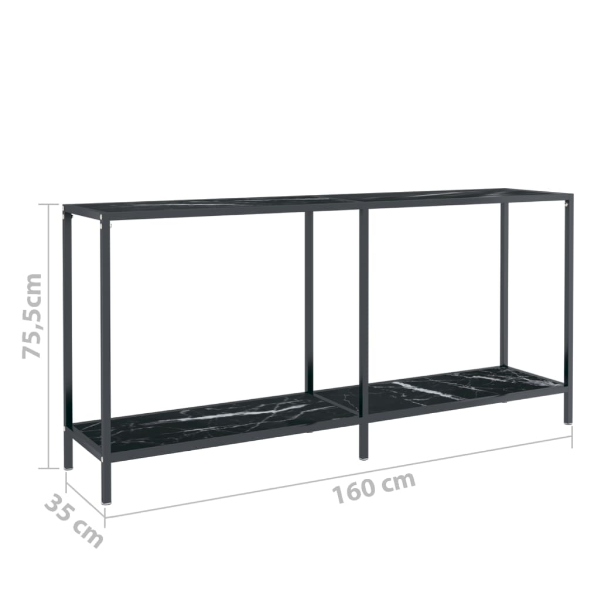 vidaXL Console Table Black 160x35x75.5 cm Tempered Glass